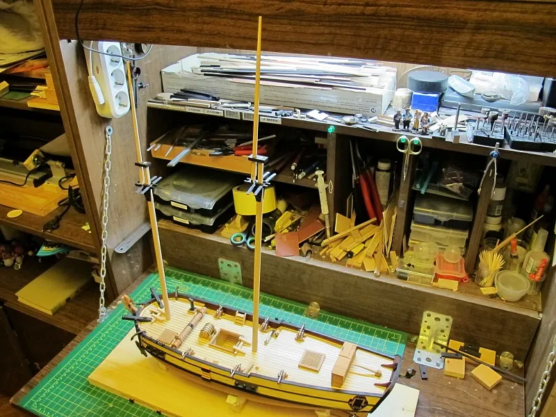 Выточил две реи на фок. Собственно их на этой шхуне всего две.