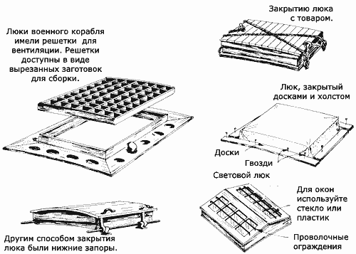 лестницы и решетки тоже относятся к палубным элементам. Нактоуз и рулевое