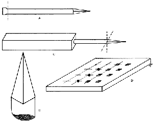 шляпку гвоздя (Рис.11-13A). Затем кончик гвоздя затачивается в сечении на