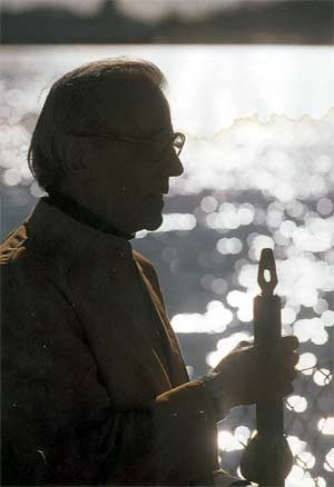 Андерс Франсен, обнаруживший корабль "Васа". Кусок почерневшего дуба застрял л трубе пробоотборника.