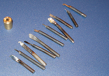 После изготовления фрезу необходимо закалить. Заточка фрезы проводится следующим образом: ту сторону режущей кромки, которая на рис. 4 находится сверху, прижимаем к полировальному бруску (бруску для правки бритв). Можно и по простому - паста ГОИ на стекле. Несколько равномерных движений и фреза готова.