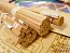 Разметка положения палуб и пушечных портов производится по специальным шаблонам, корпус имеет частичную обшивку, как и настил палуб. Все части шпангоутов, киля, бимсы, кницы, руслени, элементы пушечных станков и т.д. уже вырезаны лазером из цельного массива розового дерева или сапели. В модели корабля не применяются фанерные детали, фанера используется только при изготовлении стапеля. Восемь пушек двух калибров даны точеными из латуни, как и колокол и нагеля. Те, кто боится такелажа с его хитросплетениями и сотнями узелков, могут быть спокойны: адмиралтейский стиль модели подразумевает отсутствие как такелажа, так и рангоута. На этой модели установлена только нижняя часть грот-мачты. А прилагаемые в наборе нитки идут на обвязку пушек.