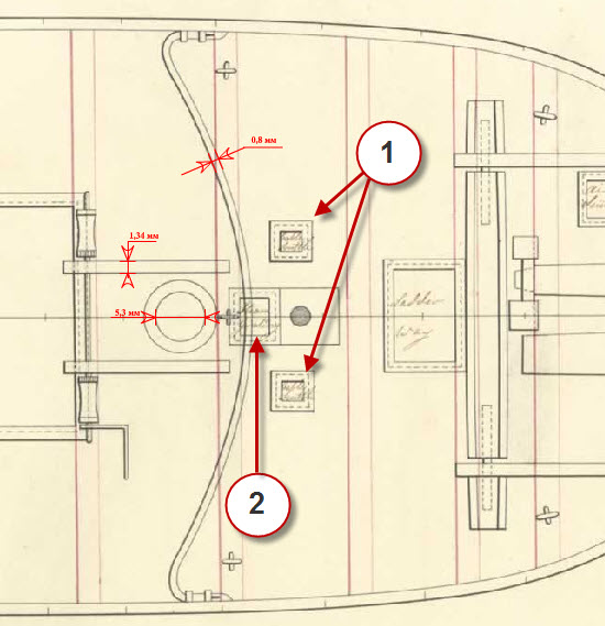 В итоге вижу два варианта: 1. сверлим отверстия за брашпилем. 2. Делаем прорези в крышке трюма.
