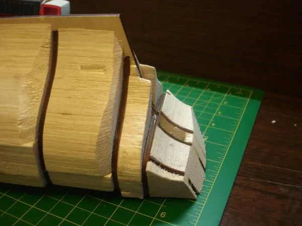 Я брал доску примерно 60х80 в сечении, это позволяет заполнить шпацию одним куском (ближе к миделю ширины не хватало, ставил ещё маленькую нашлёпку - на фото видно).