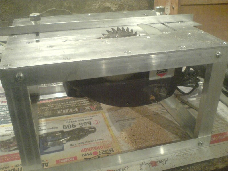 Столик сделан на заказ, материал- дюраль, уголок тоже дюраль. Надо сказать, что она достаточно лёгкая. В общем вот фото: Уже испытана. Пилил рейку,брусок.