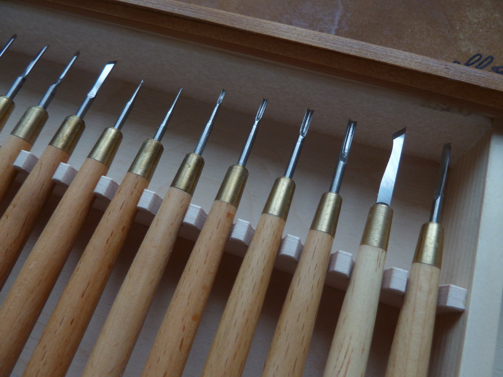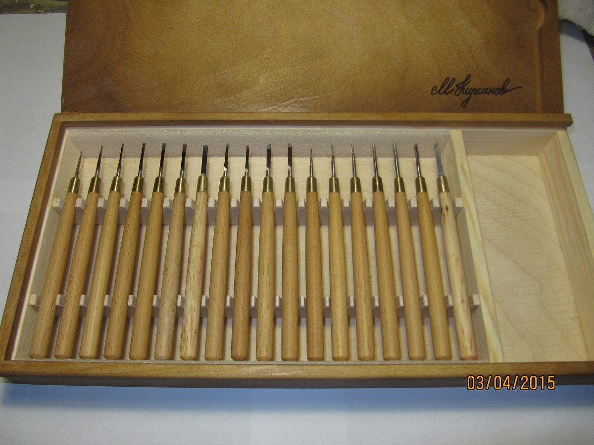 В набор входит 18 резцов. Ручка бук, тип карандаш. Коробка. Пересылка "Почтой России"
