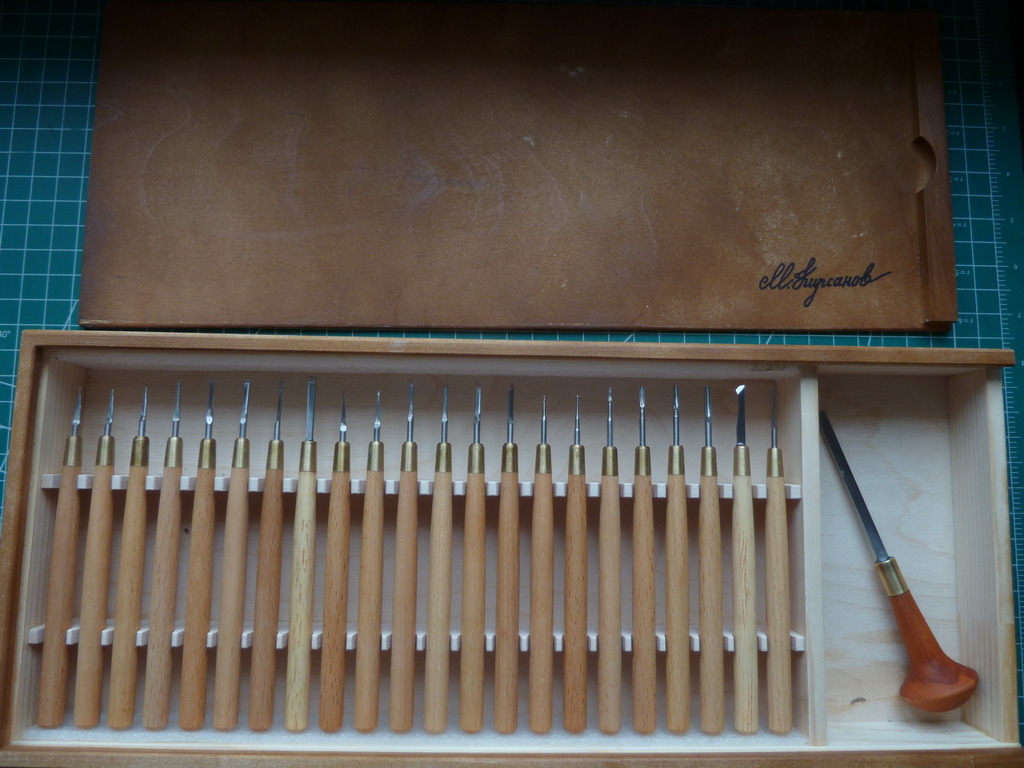 А что справа в коробочке лежит? И точила какого-нибудь в наборе не бывает? Если есть, то какое?Dmitry Shevelev писал(а):Недавно стал счастливым обладателем набора резцов от Михаила! Работа замечательная! У меня конечно есть самодельные резцы, но они не идут ни в какое сравнение с этими. При этом мастер учитывает индивидуальные запросы заказчика. Михаил, огромное спасибо за прекрасную работу!