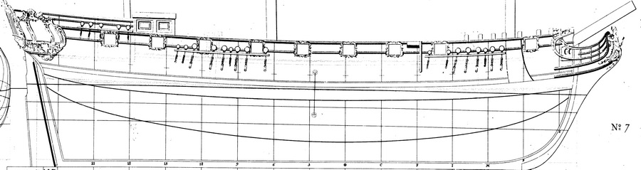 А вот не факт, если копаться в чертежах, картинах, гравюрах и т.п. то можно найти примеры, когда рамки прямоугольные. И горизонтальные косяки перпендикулярны шпангоутам. У меня складывается впечатление, что таких примеров большинство.GrEgor писал(а):...верхний и нижний косяки пуш порта должны идт параллельно палубе(в данном месте) ...