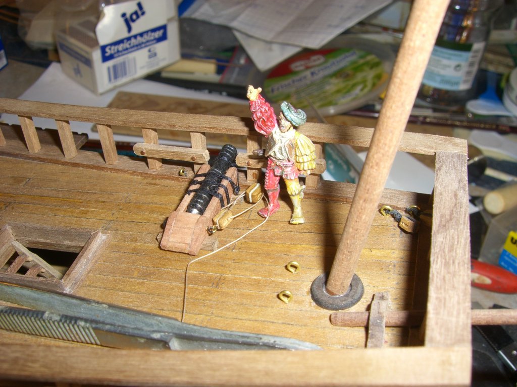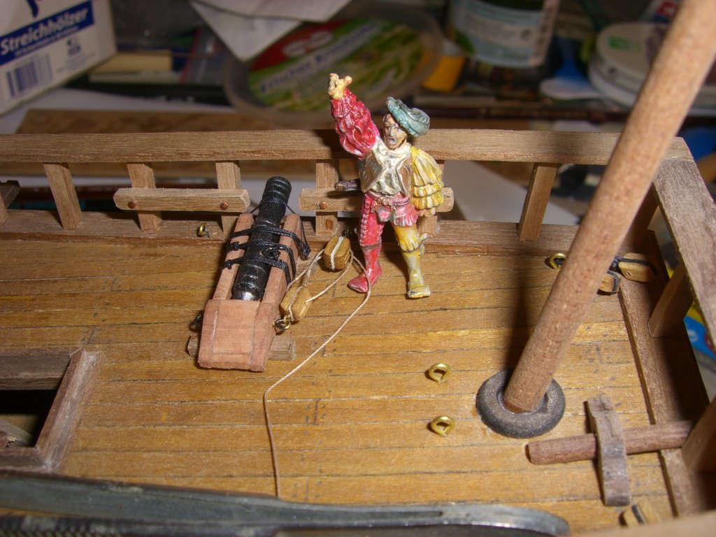 Там кольца на задней части лафета есть, для этого и предназначены. Иначе пушка сдвинется на волнении.Petr писал(а): Однако, как делать обвязку неясно. Нужен ли брюк, или как на одном из рисунков аналогичных бомбард ее гвоздями к палубе крепили? Нужны ли тали?