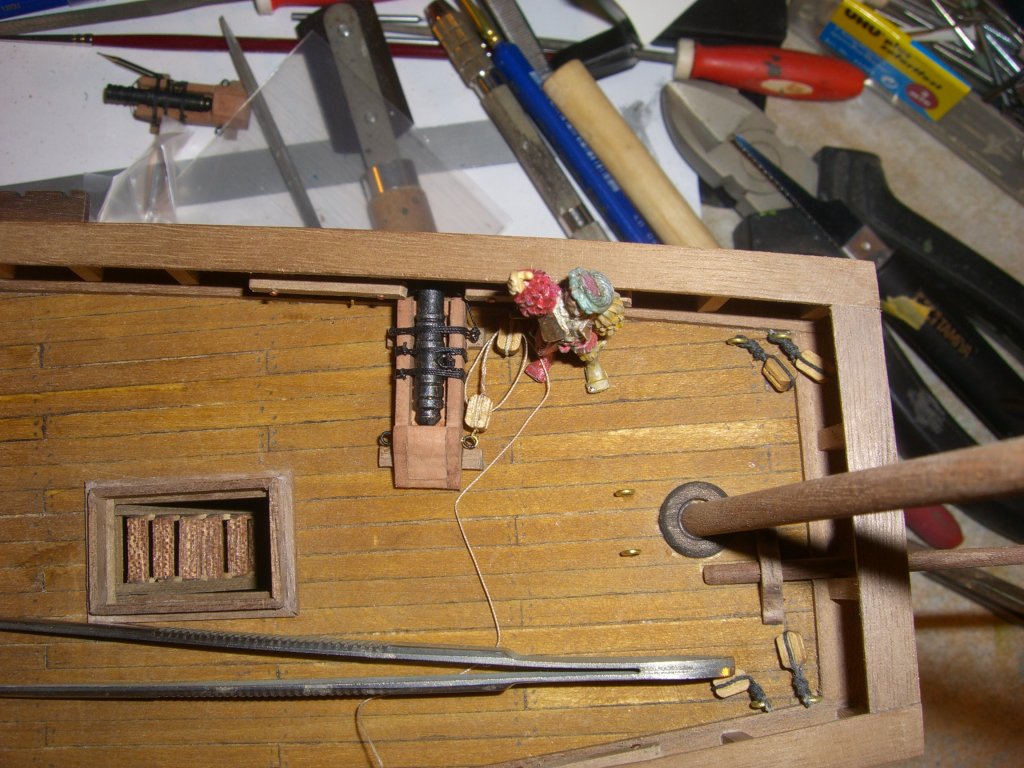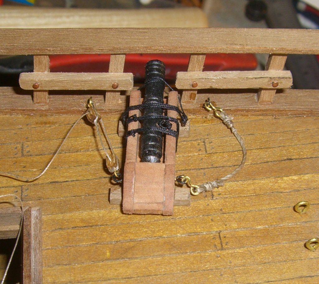Для себя теперь вообще решить не могу, тали, брюк, или вообще вбить второй комплект рымов и в лафет, и в борт, и поставить и тали и брюк....