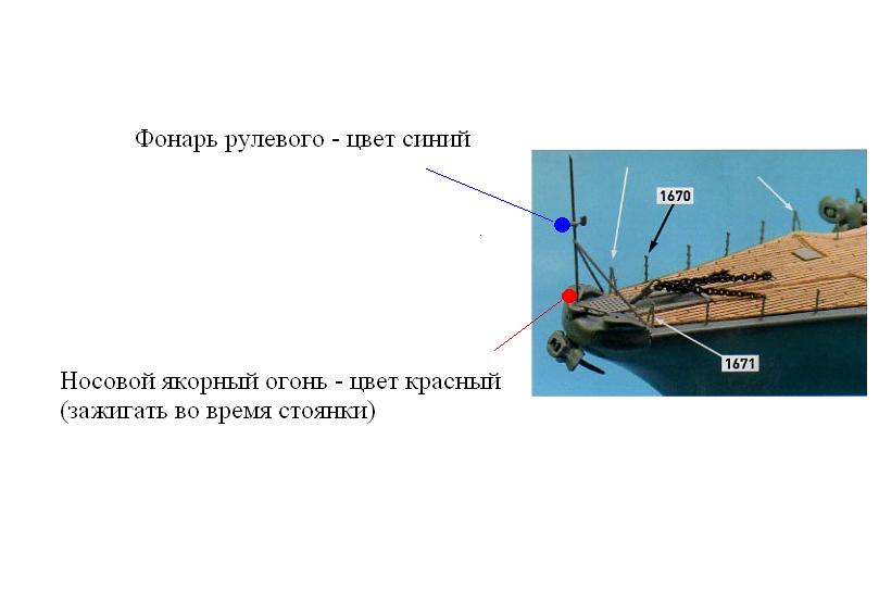Есть-ли знающие Люди, которые могут определить (или предположить) точное размещение огней на корпусе Бисмарка, и в частности, где их лучше разместить на модельке?