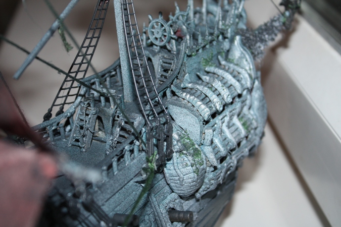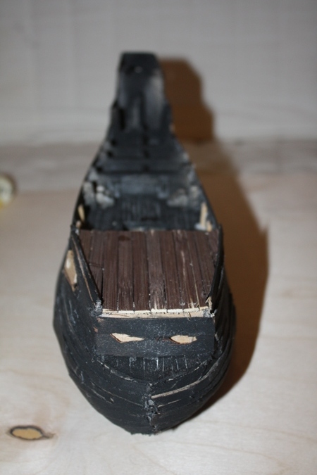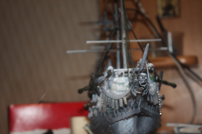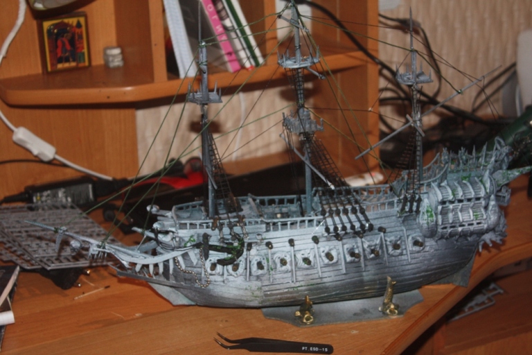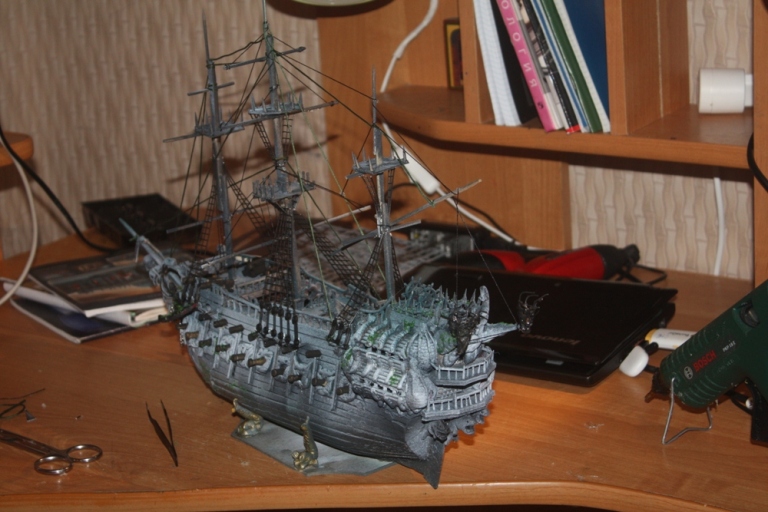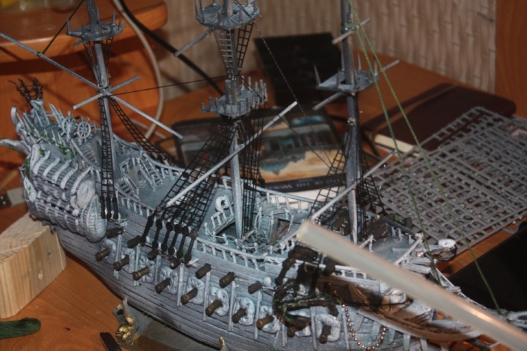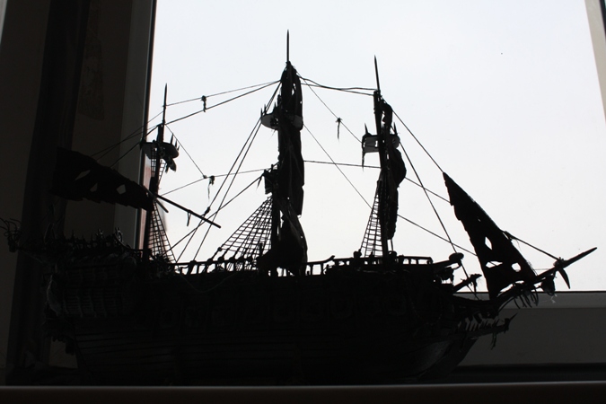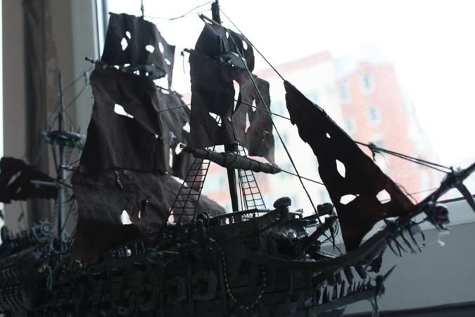 Всем доброго времени суток ! Представляю Вашему вниманию модель парусника из пиратов карибского моря . вся модель(за исключением трех марсов и вант) - самодел . Родители не помогали . Модель делалась два месяца . Декор на корме , носу и вокруг пушек сделаны из пластилина- пластика . Собиралась из подручных материалов - зубочисток , линеек , спичек и т.д. длина 55см , ширина по корпусу 10 см .