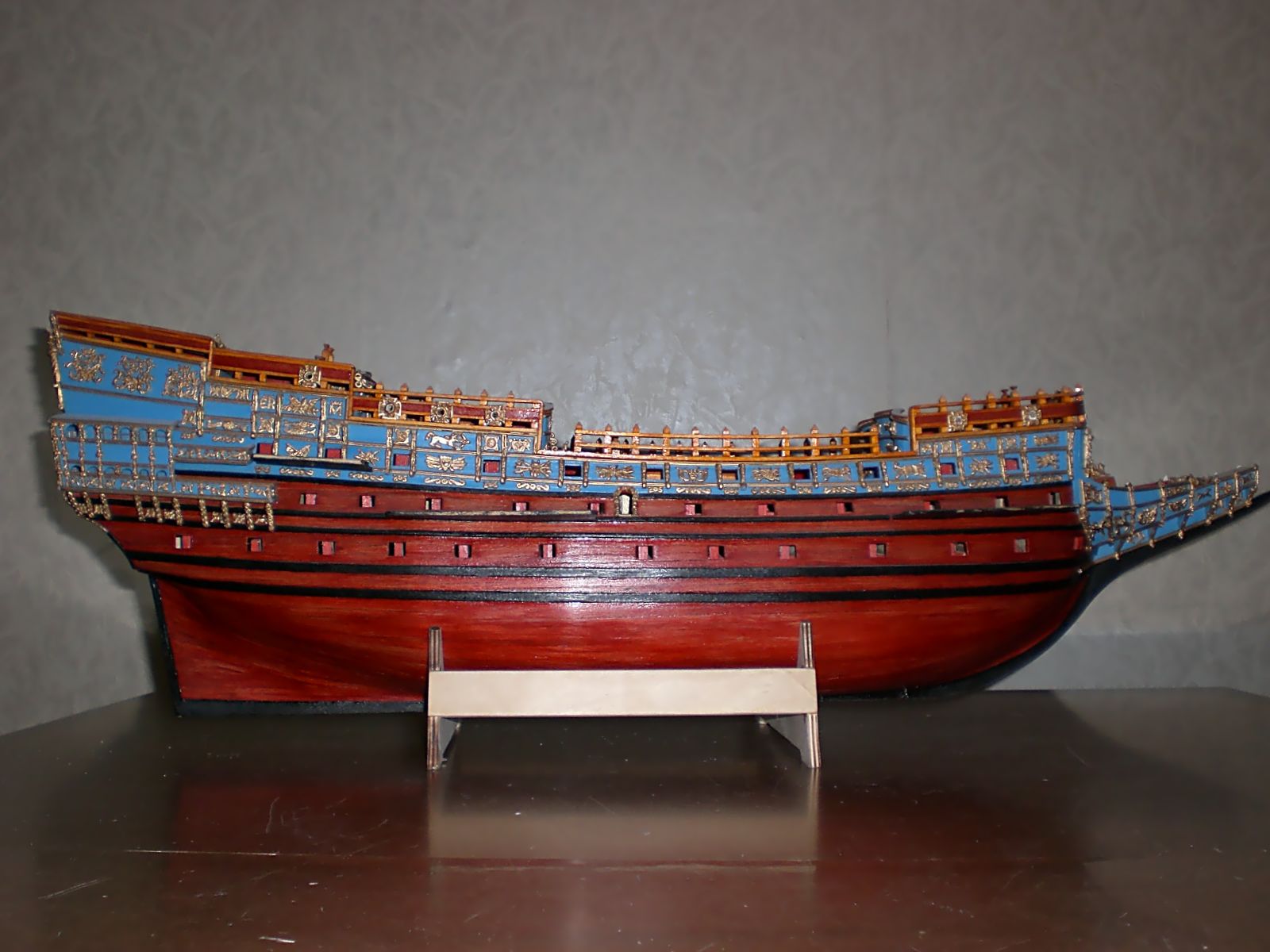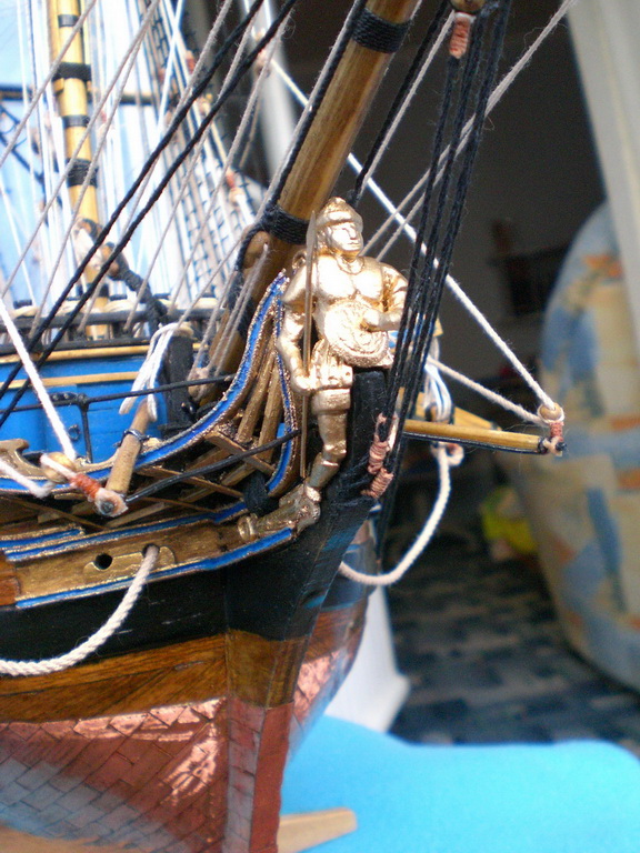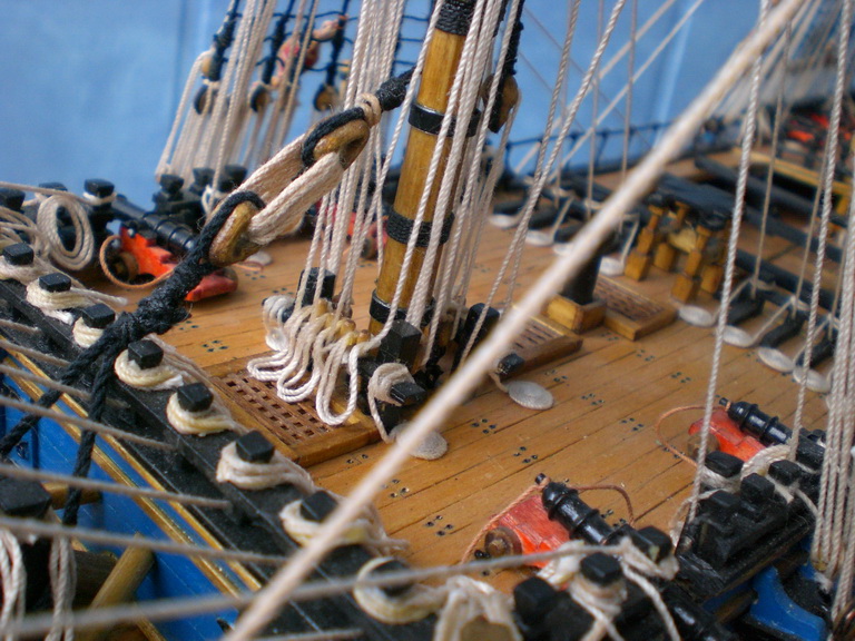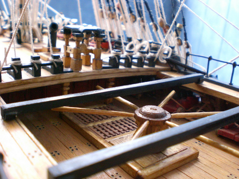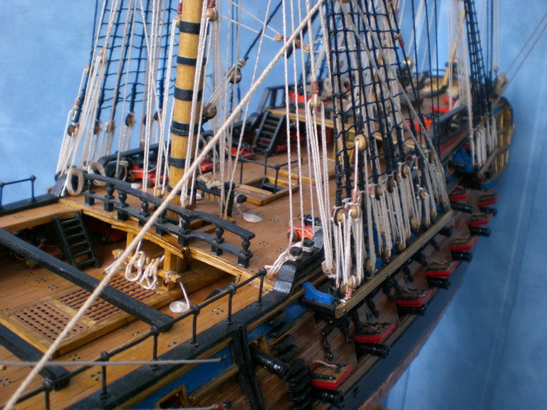 Разиеры такие:920х780х430мм.Насчет такелажа.Все делал по чертежам от Corel-а.Ничего не пропускал,все согласно схемам проводки такелажа предложенным Corel.Кое-что подсмотрел у Shipyard-а.Конечно если делать с парусами,то снастей прибавится.