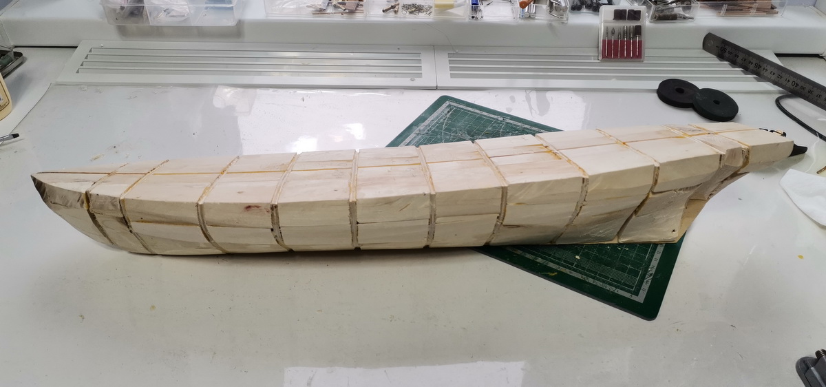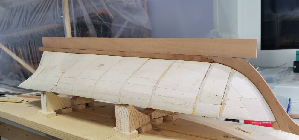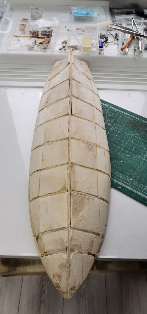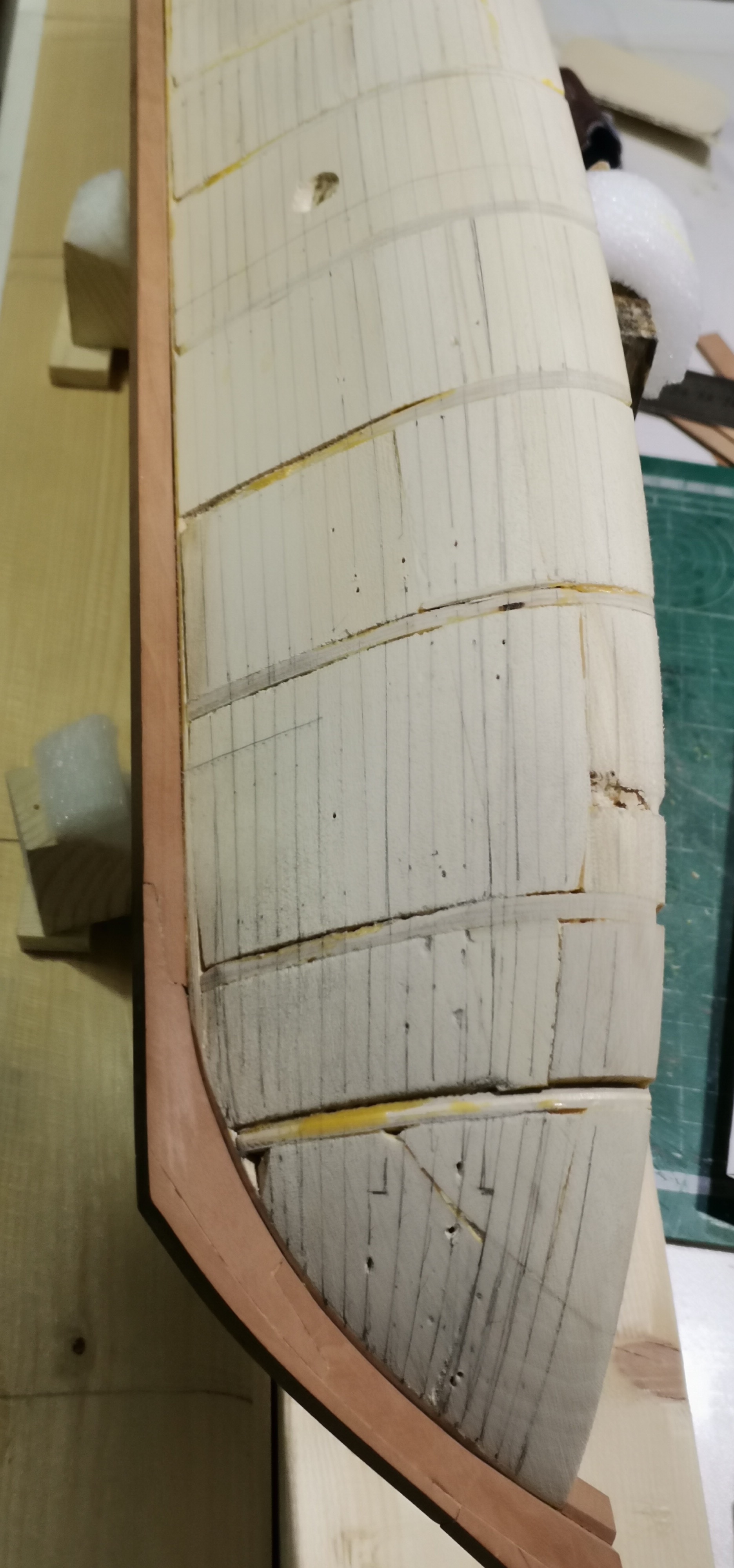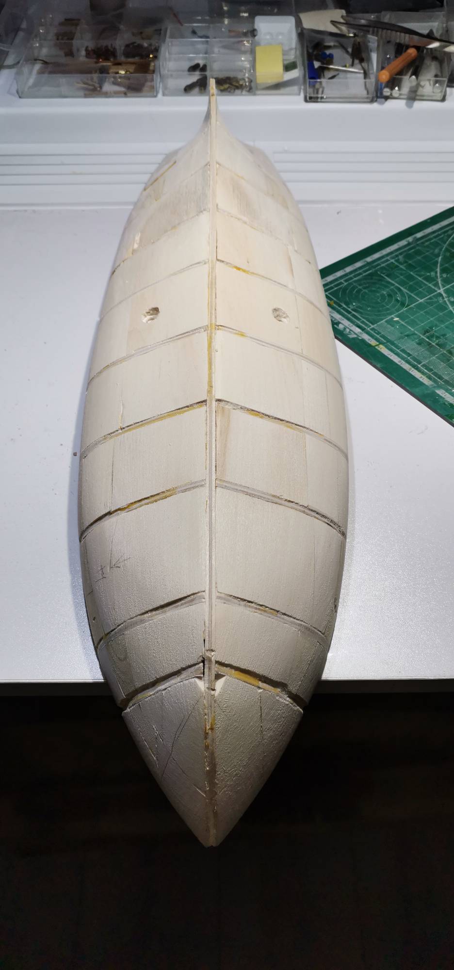 Дмитрий погибь палубы делал дополнительными "бимсами", приклееными к болвану. Я сделал сразу на болване.