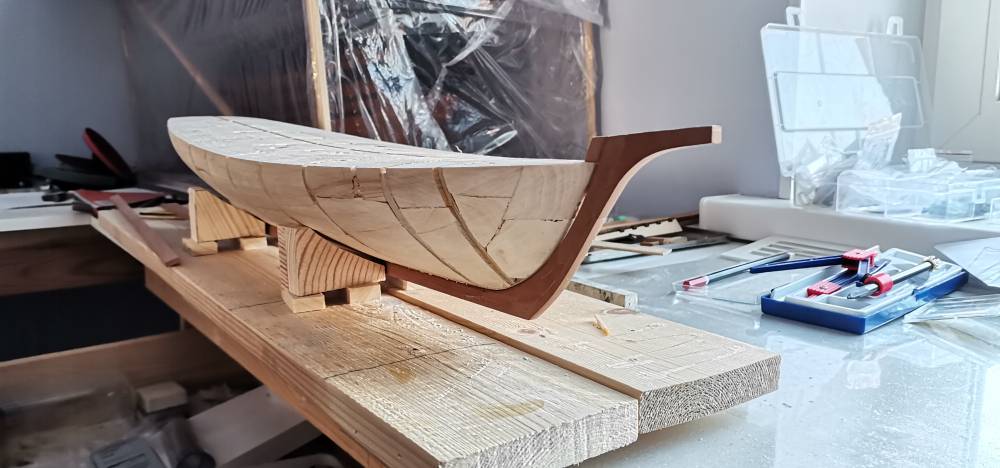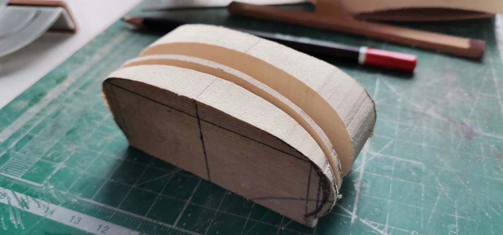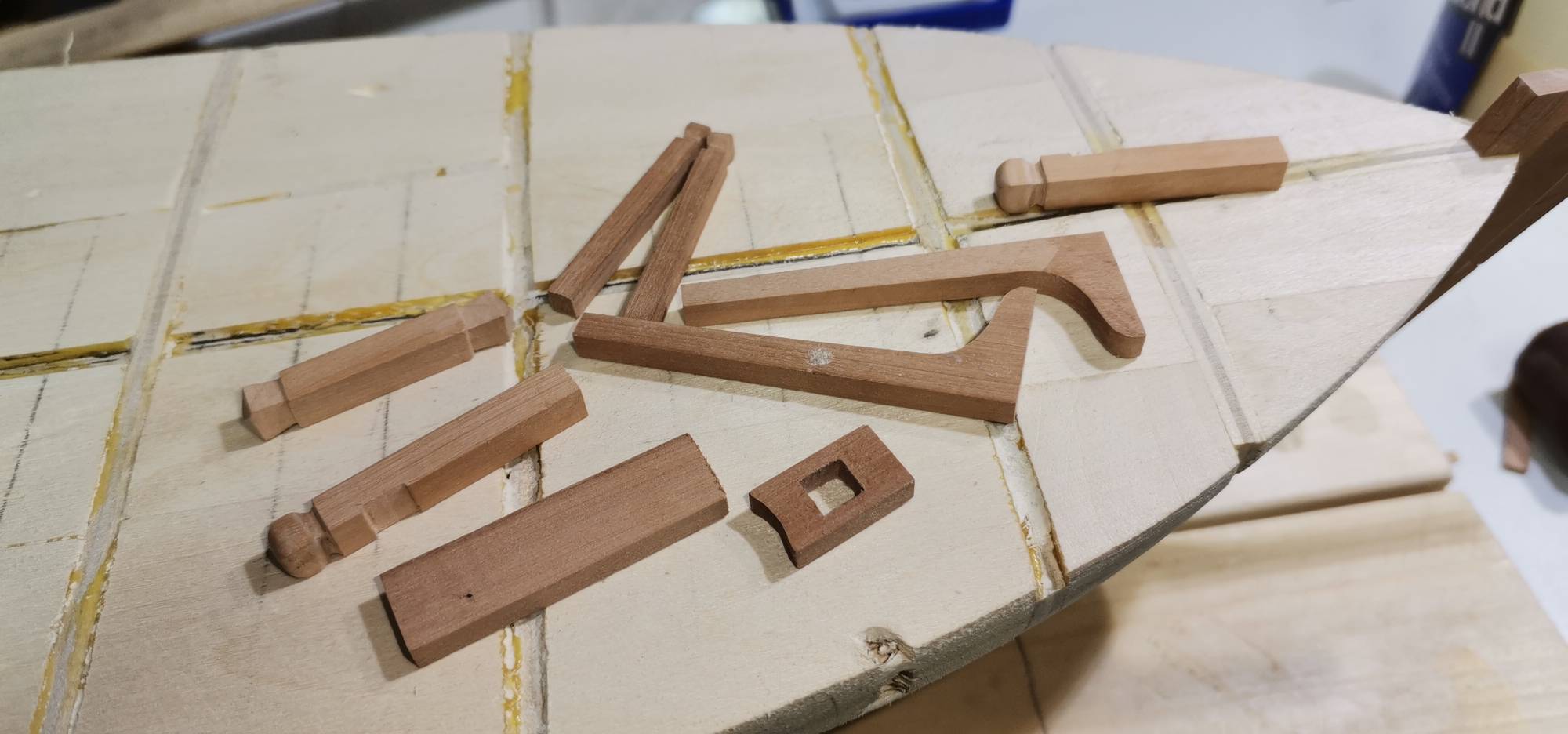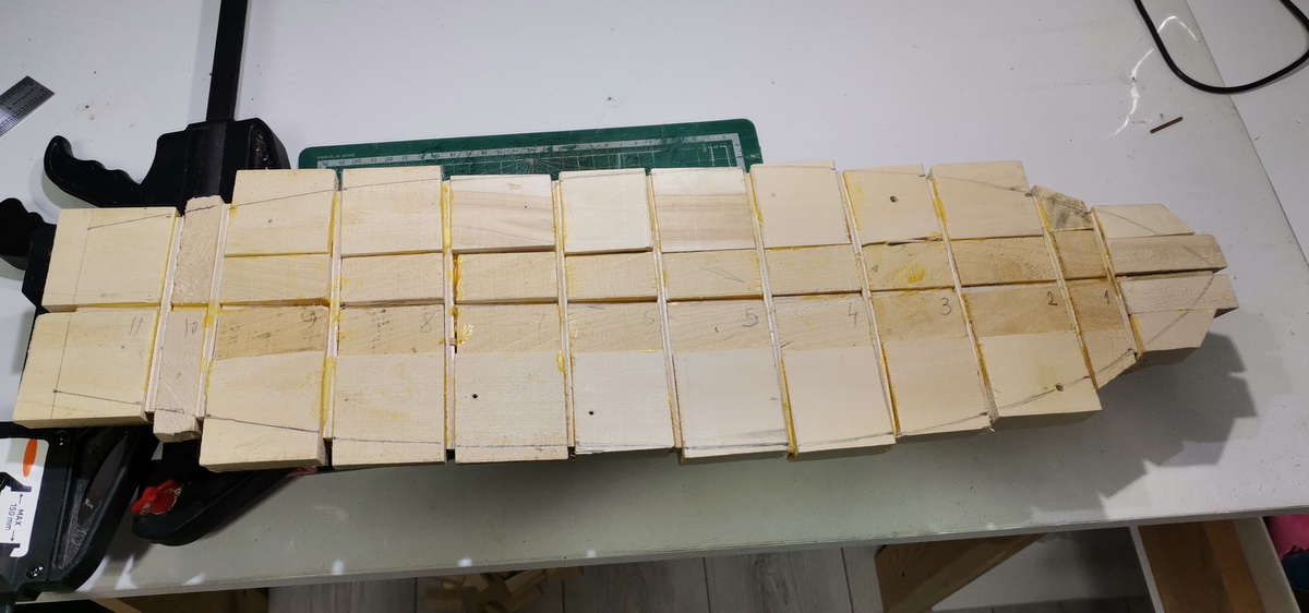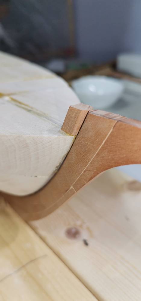 Корма.. Эти элементы сделал в шип. Повторяю за Шевелевым. Правда шип так себе)), но это мой первый)). Теперь самое гемморойное - обшить со всех сторон. Гнутьё реек это моё слабое место. Всё понимаю как делать, но получается не всегда красиво и не с первого раза.