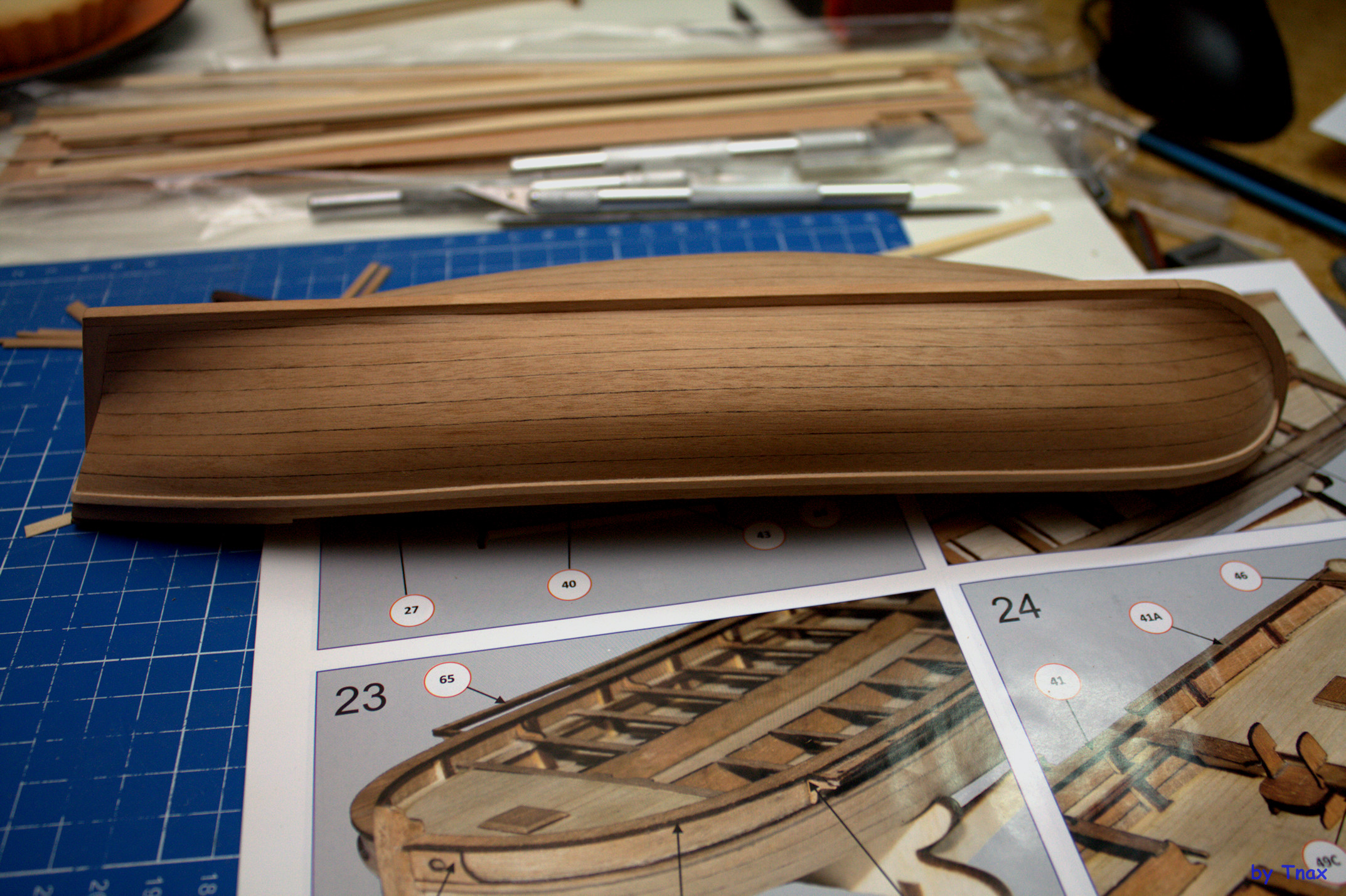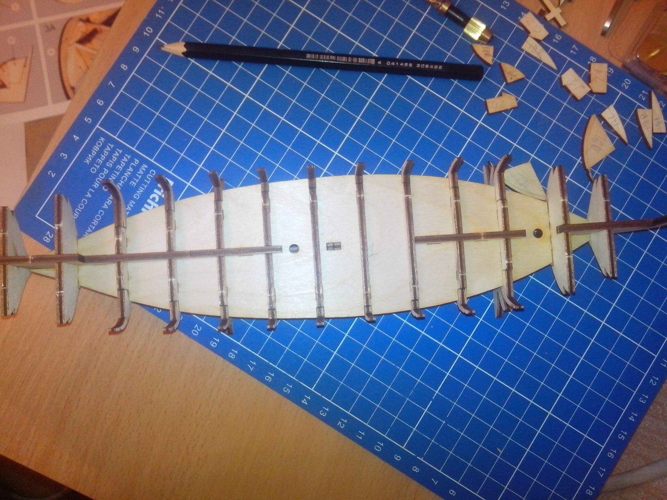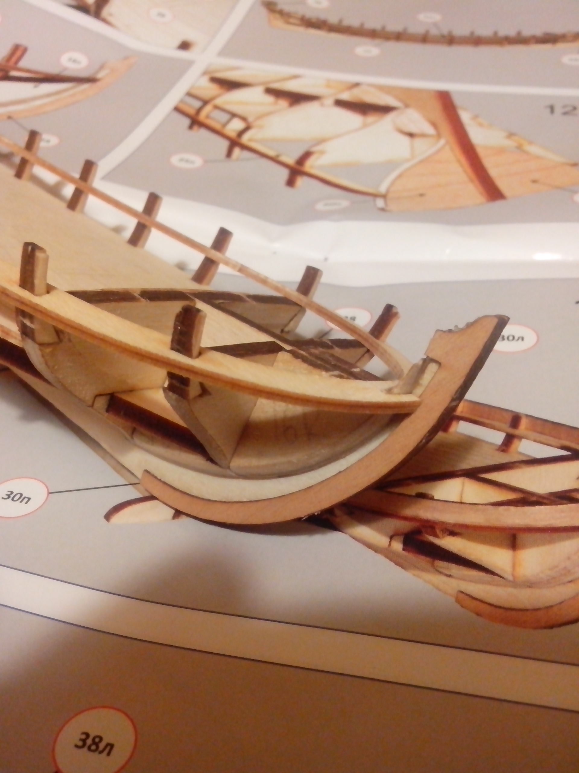 - положение подлегарса по инструкции само выставляется в пазах на шпангоутах. А по факту заметно гуляет (примерно до 5мм местами). Благо обшивка с явным запасом и получит дырку у киля невозможно.