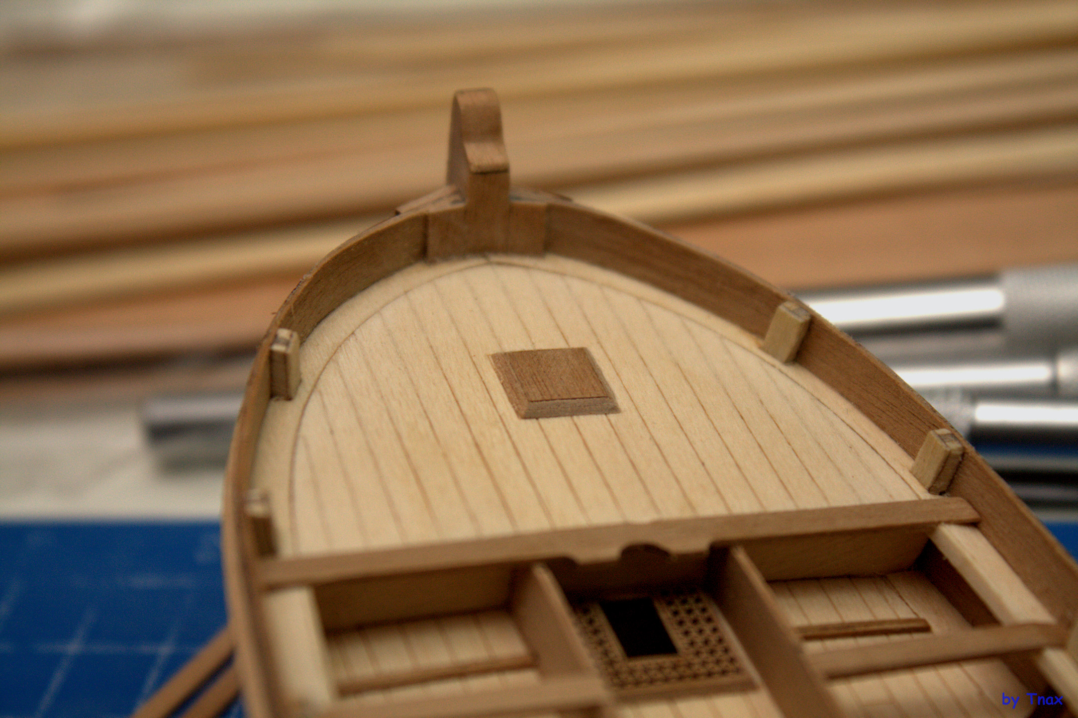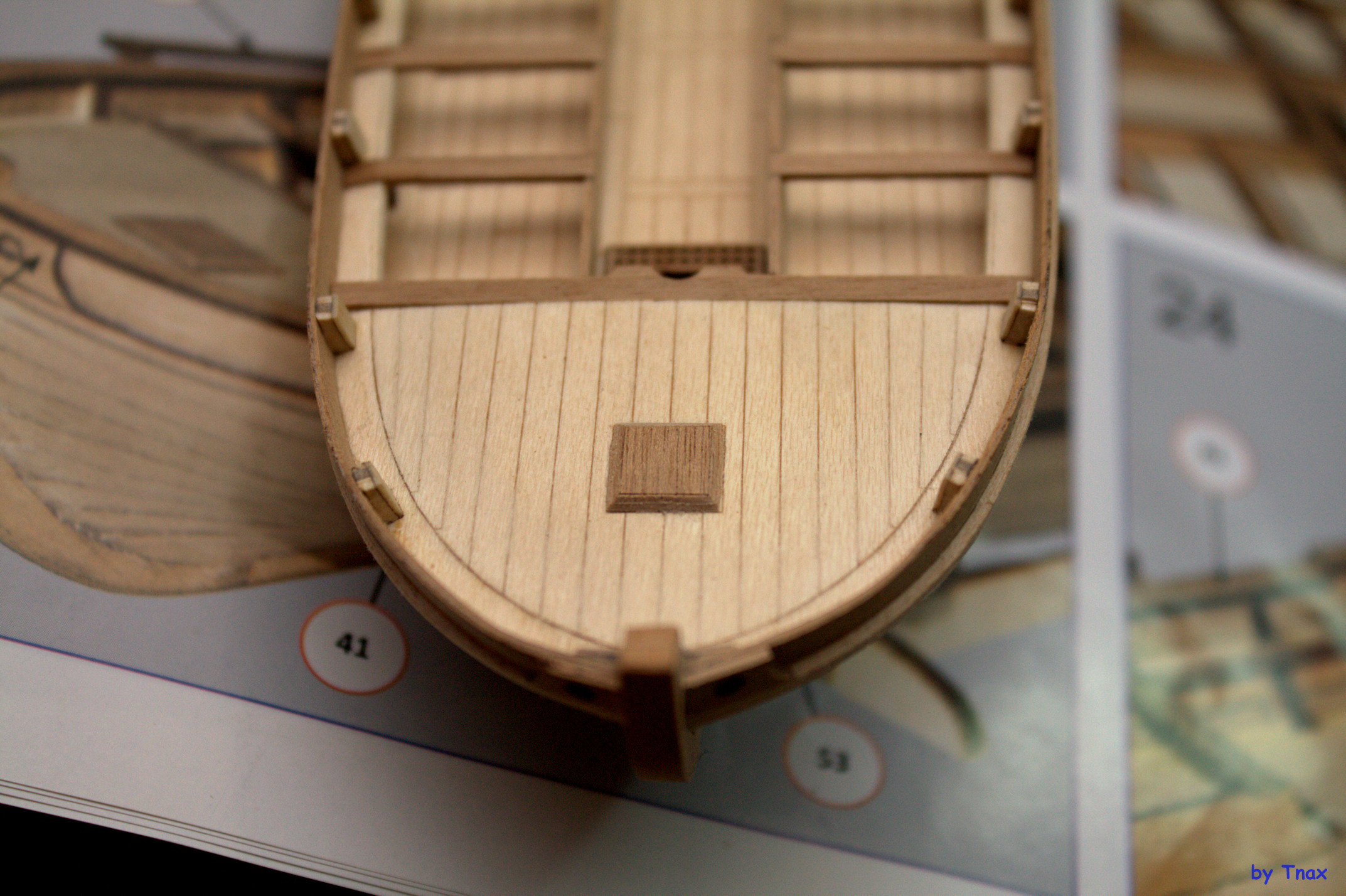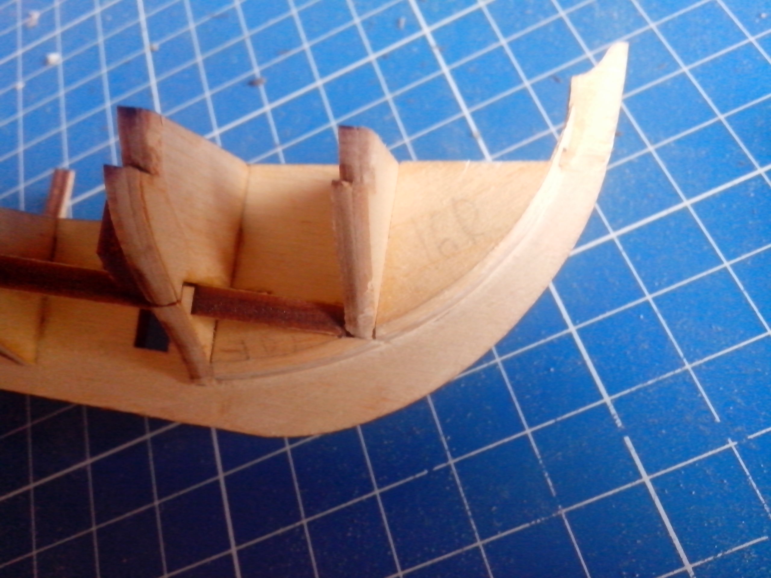 - от правильного внутреннего позиционирования подлегарса зависит, насколько ровно выйдет палуба кормы и носа. У меня получился завал к обшивке.
