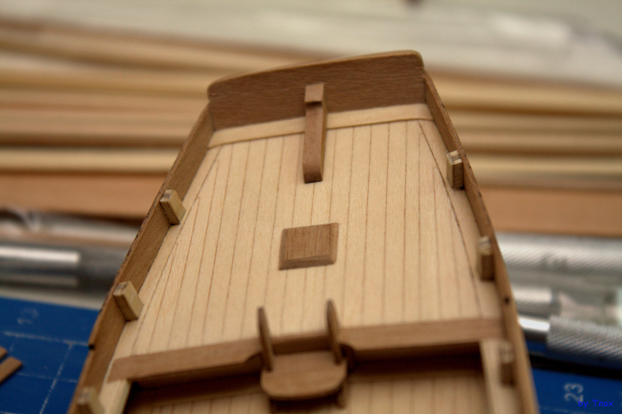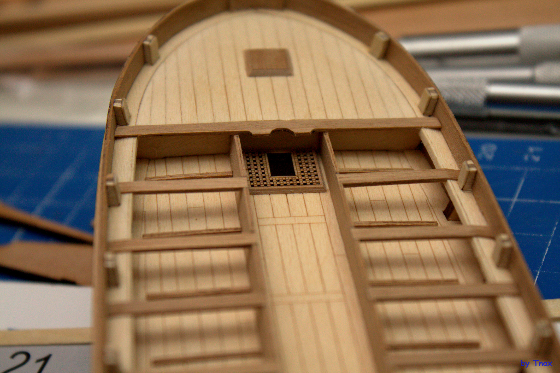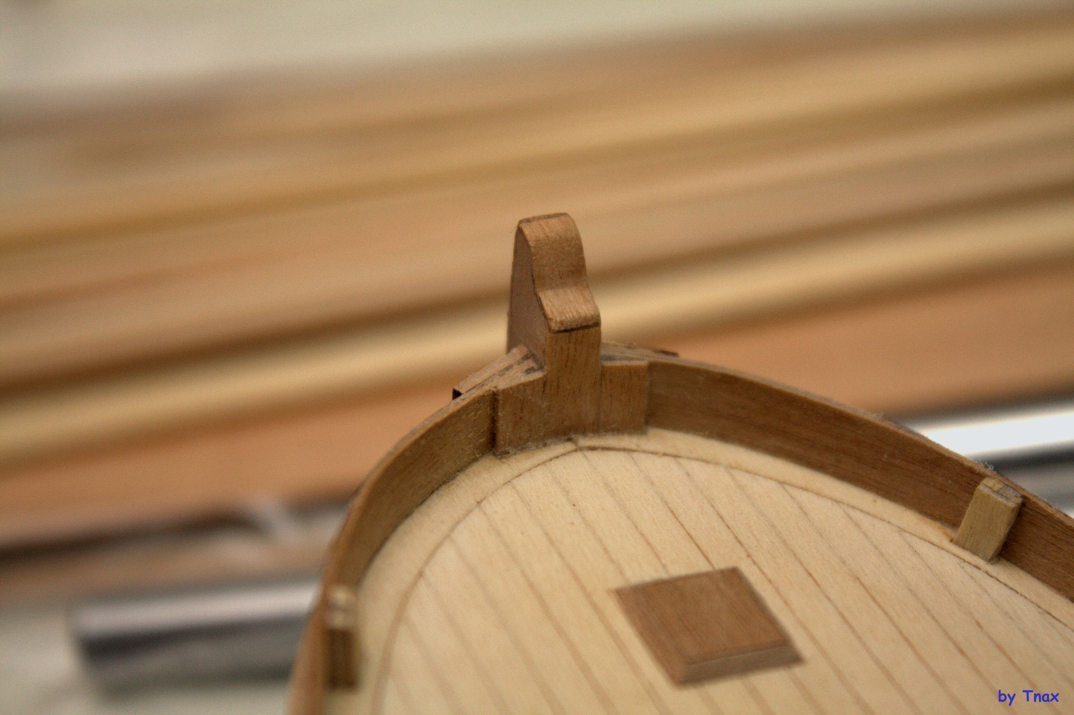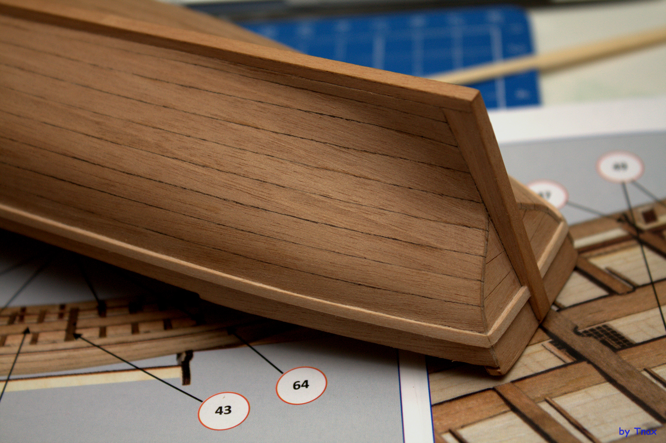 - от правильного внутреннего позиционирования подлегарса зависит, насколько ровно выйдет палуба кормы и носа. У меня получился завал к обшивке.