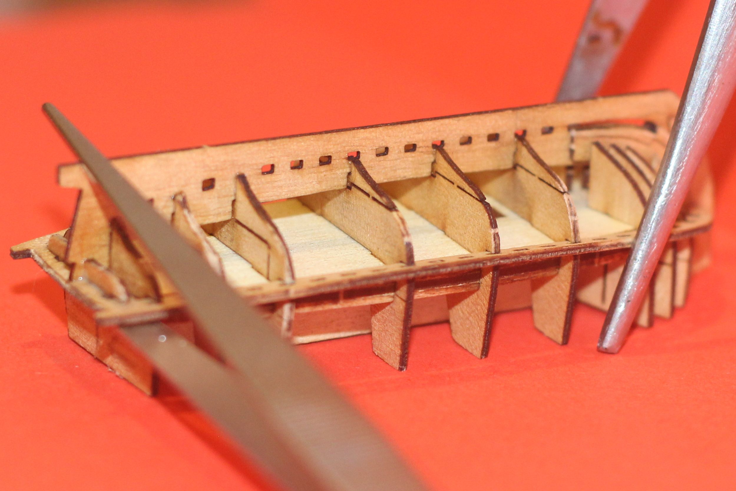 2. Можно фото переда? визуально выглядит что поворотные шпангоуты стали ниже и при приклейке деталей из груши они будут висеть, а не опираться на кондуктор
