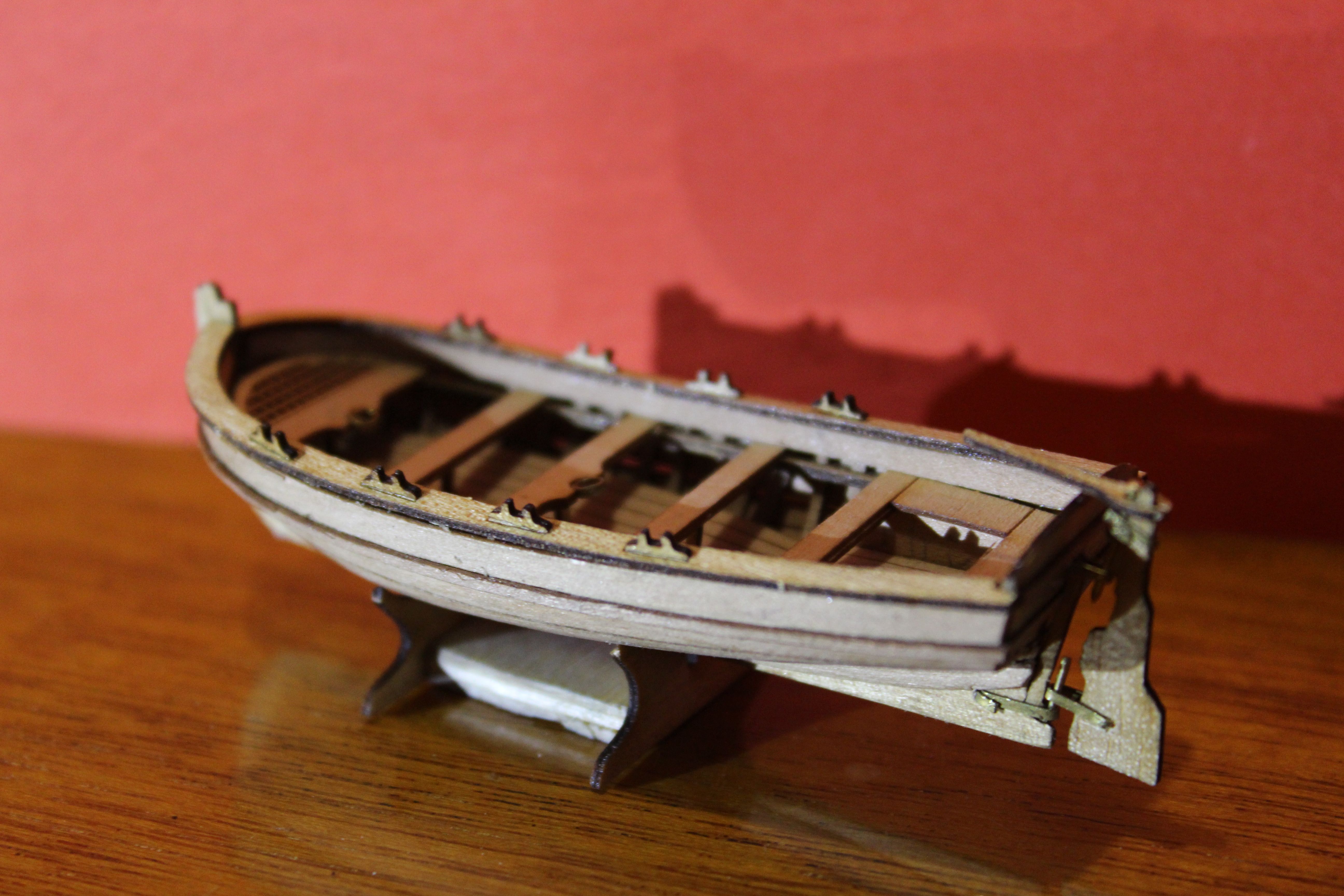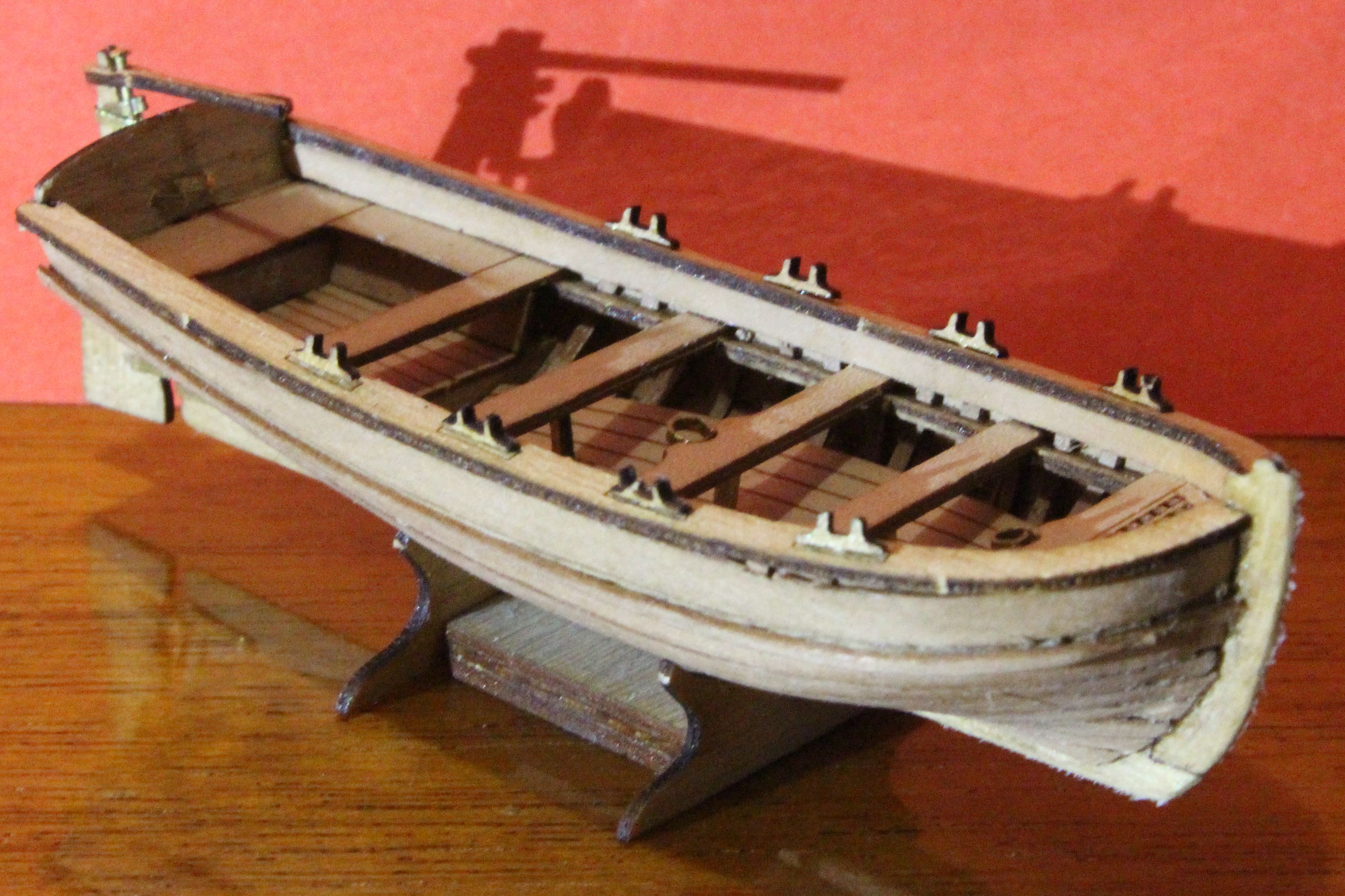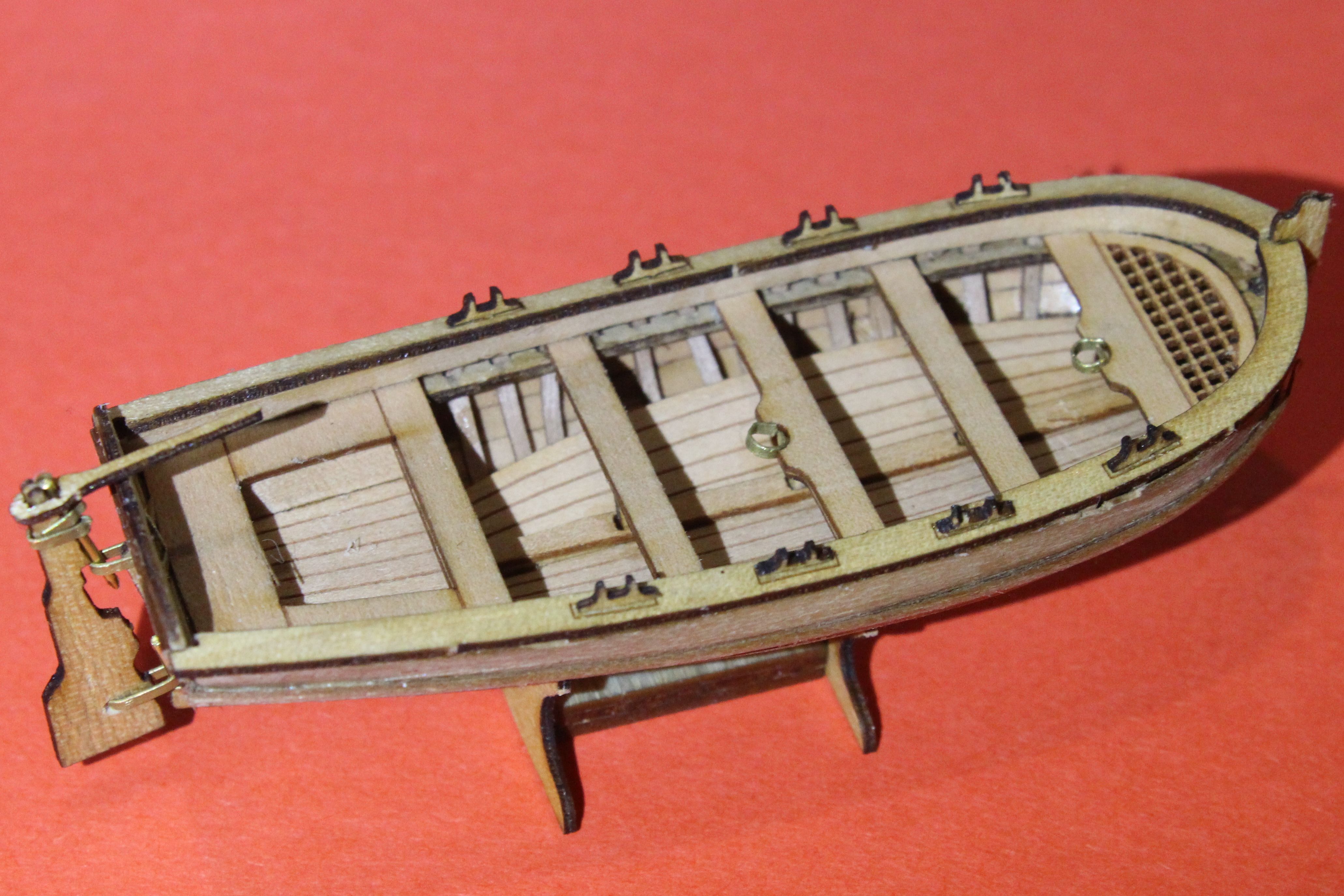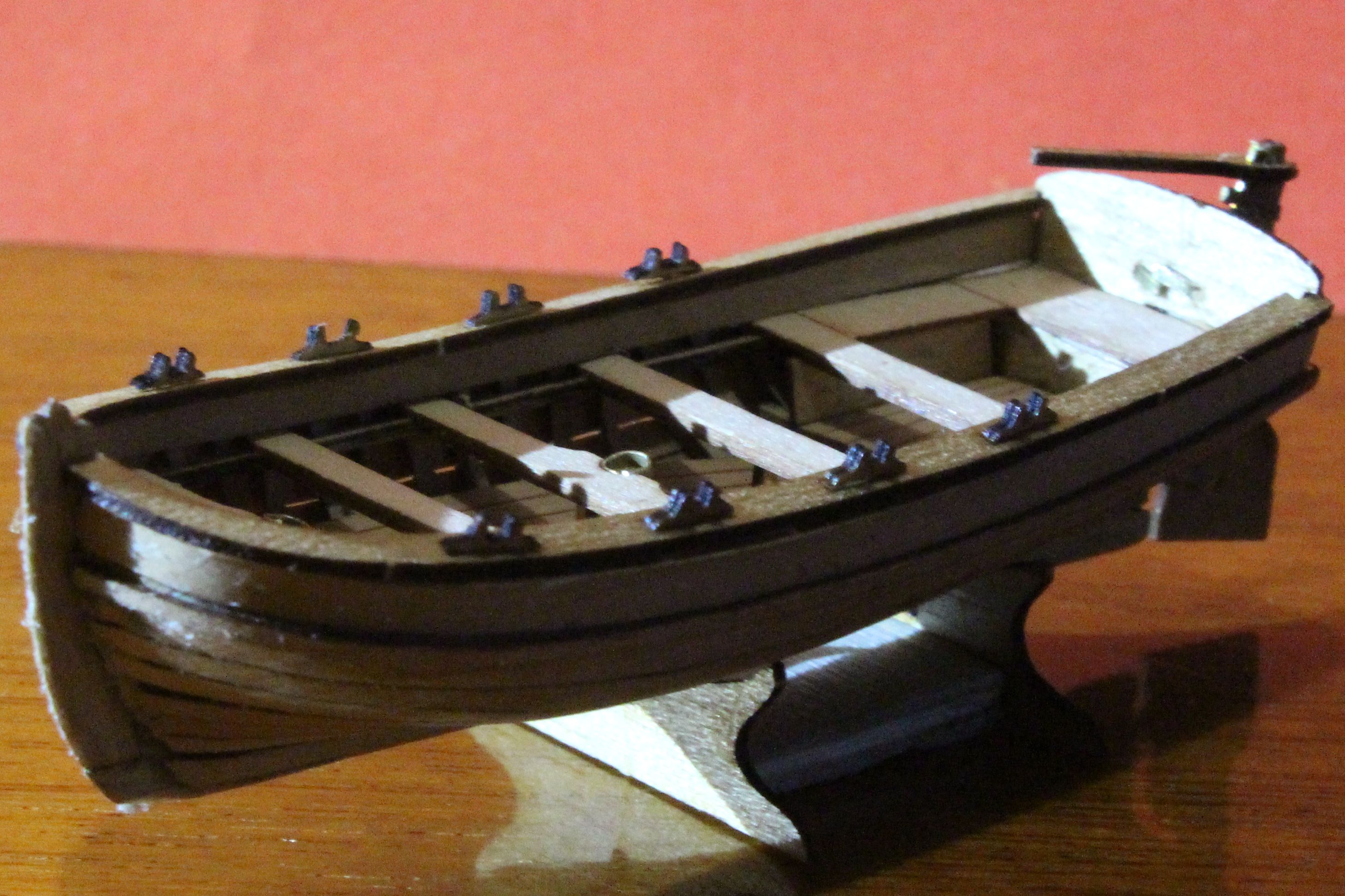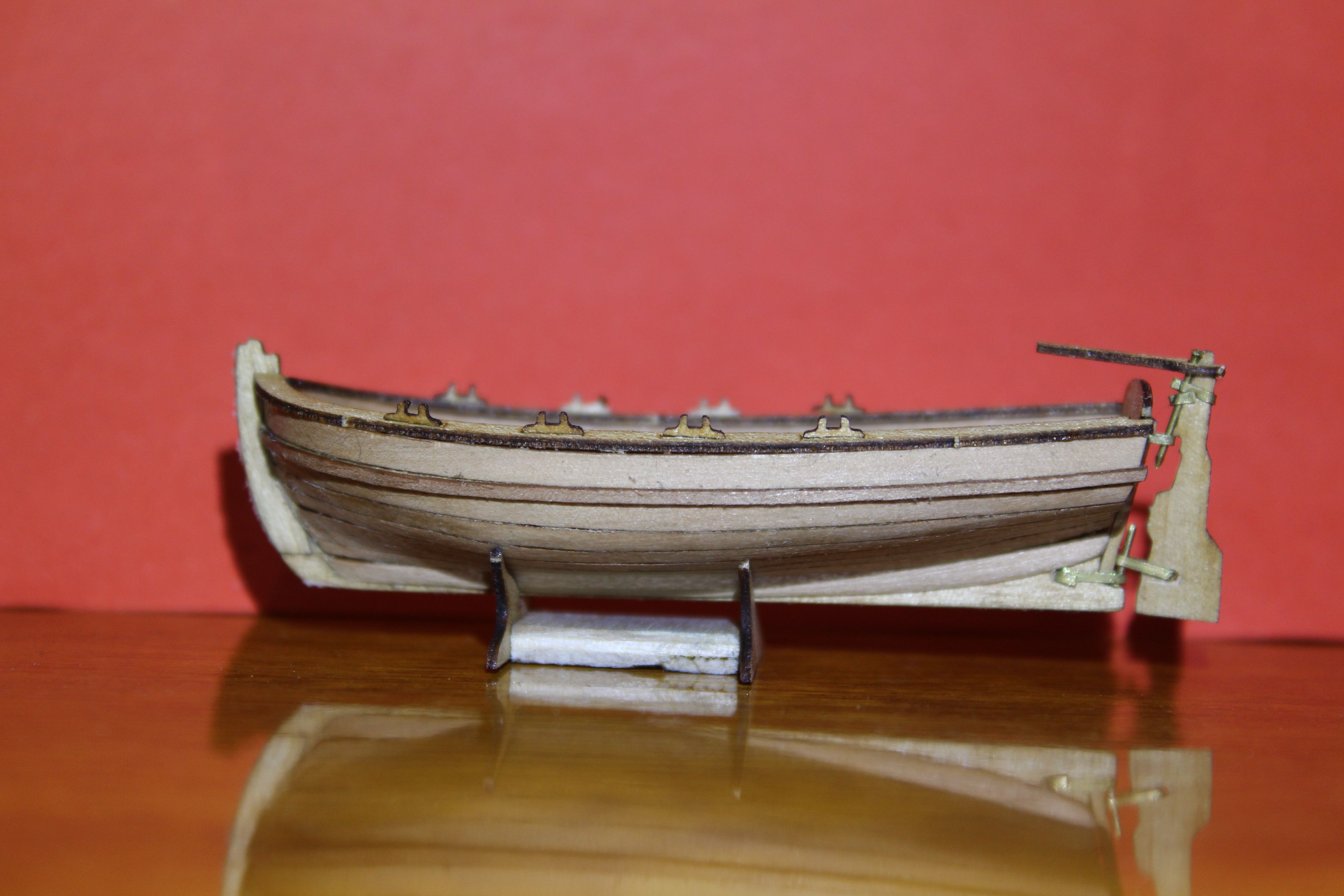 В целом сборку шлюпки закончил. После очередного просмотра мастерских работ Валерия Вдовина И VadimSPb понимаю, что у мне еще работать и работать. Но радует то, что моим домашним даже моя корявенькая лодочка понравилась. Вот потому я боюсь, что покрыв неудачно модель окончательно угроблю свое первое творение.