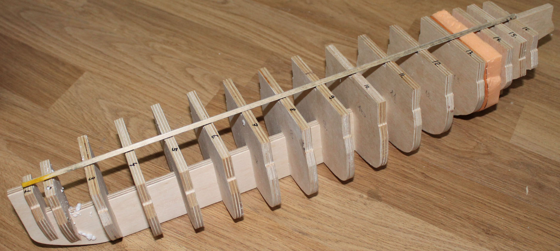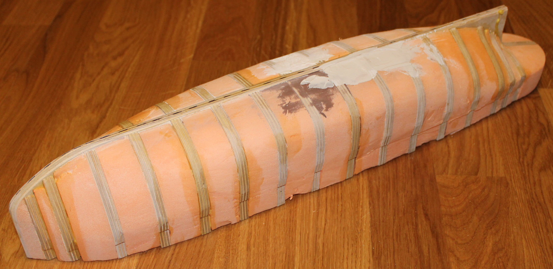 шпангоуты и киль сдела на своем чпу. для заполнения между ними использовал пеноплекс, он тоже замечательно фрезеруется проба шпатлевки