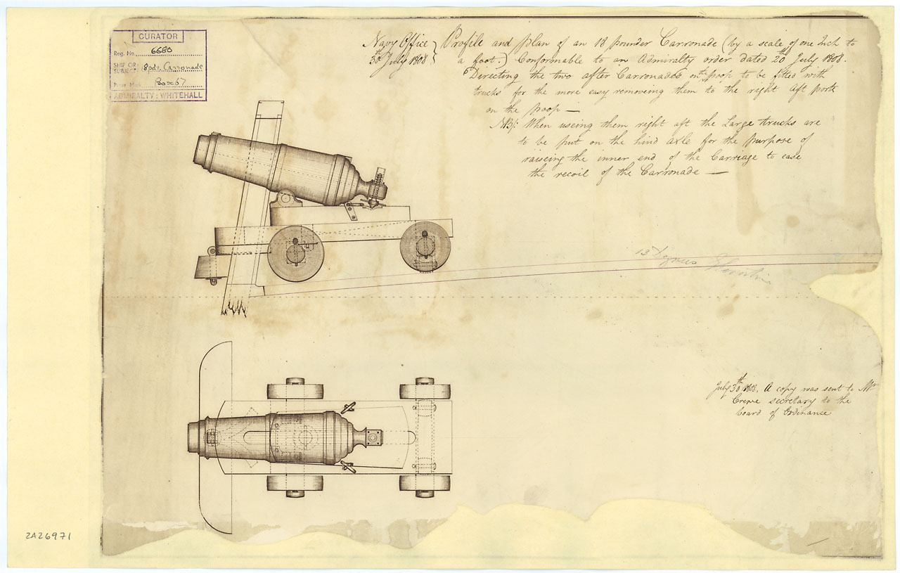 Для меня важным вопросом остается - с какого именно года карронады стали ставить на полноценные платформы, без лафетов на колесах и без лафетов на платформе.