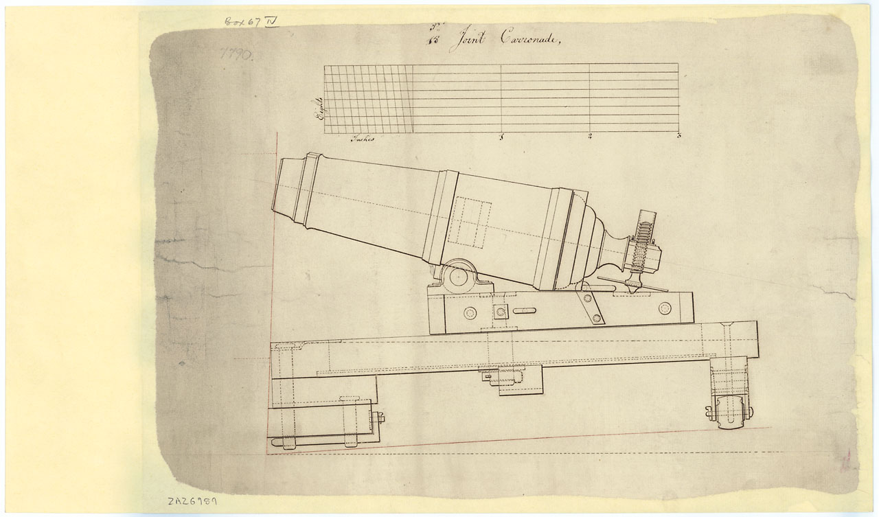Единственно не понятно, как её смогли датировать 1719 годом... Станок под карронадой по многим иным источникам - 1780-1790 гг.А сама карронада имеет явные признаки, если сравнивать с чертежами, выпуска после 1800 года.....