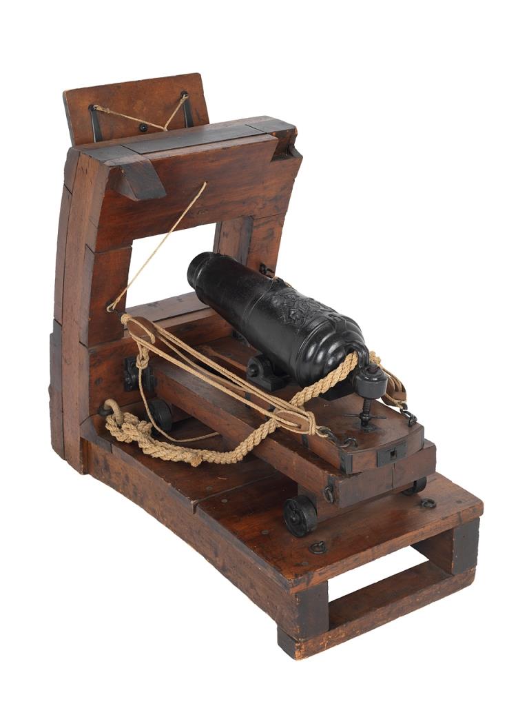 Катки - так делали на начальной стадии, на первых карронадах. Они нужны лишь чтобы карронада со станком была повыше. С начало их использовали на пушечных лафетах. Затем был гибрид - платформа+ пушечный лафет. А это один из последующих "гибридов" (переходных стадий) - вариант перед привычными нам карронадными платформами.