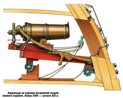 А какая именно карронада? Карронад много разных. В альбоме Горобовского одних только 24-х фунтовых карронад штук 6 и станки разные.Надо более полную информацию,хотя бы какого калибра там стояли карронады.