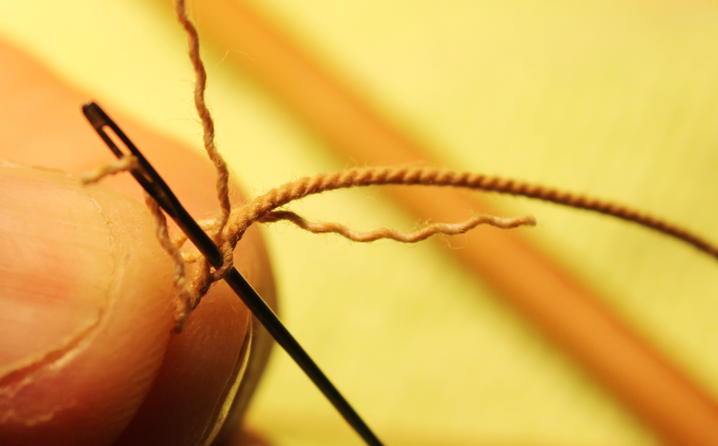 Берем иголку, вставляем ее под прядь в том месте, где должен начинаться сплесень. Т.к. канат левой свивки - вставил слева направо. На канате правой свивки - наоборот.
