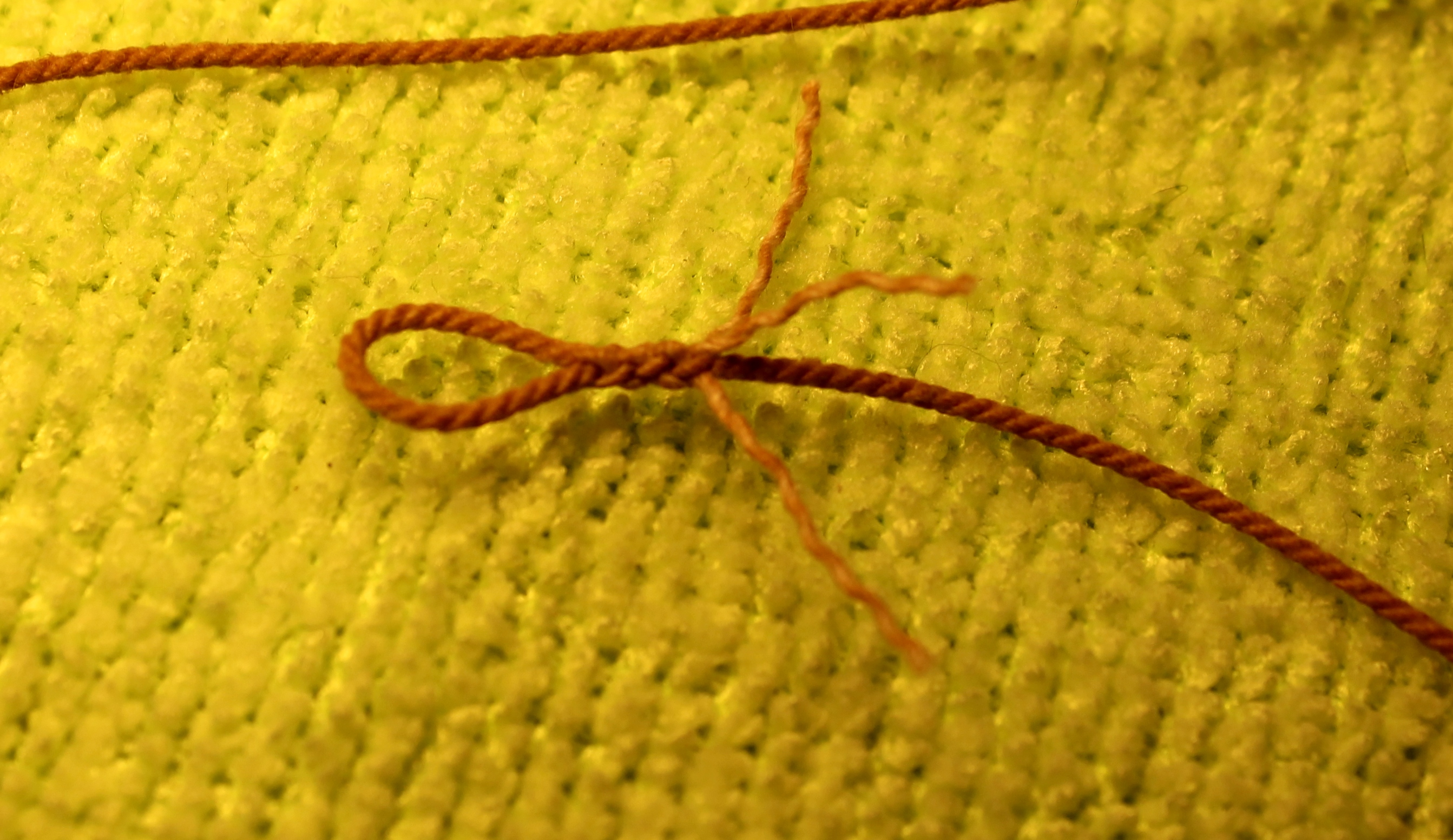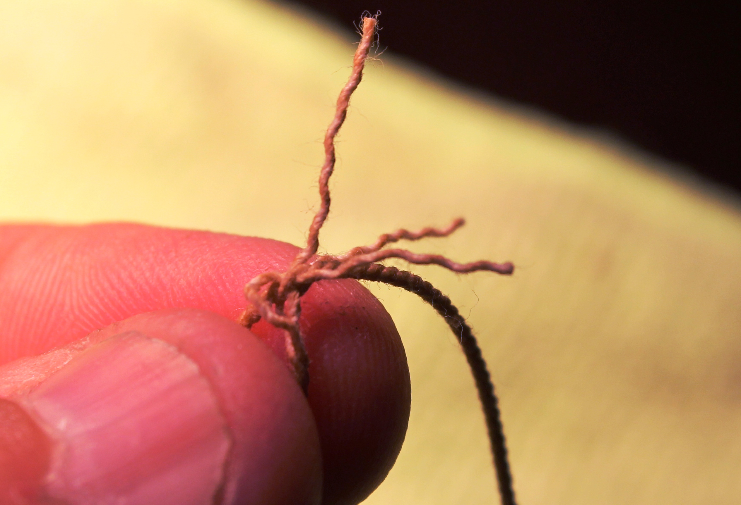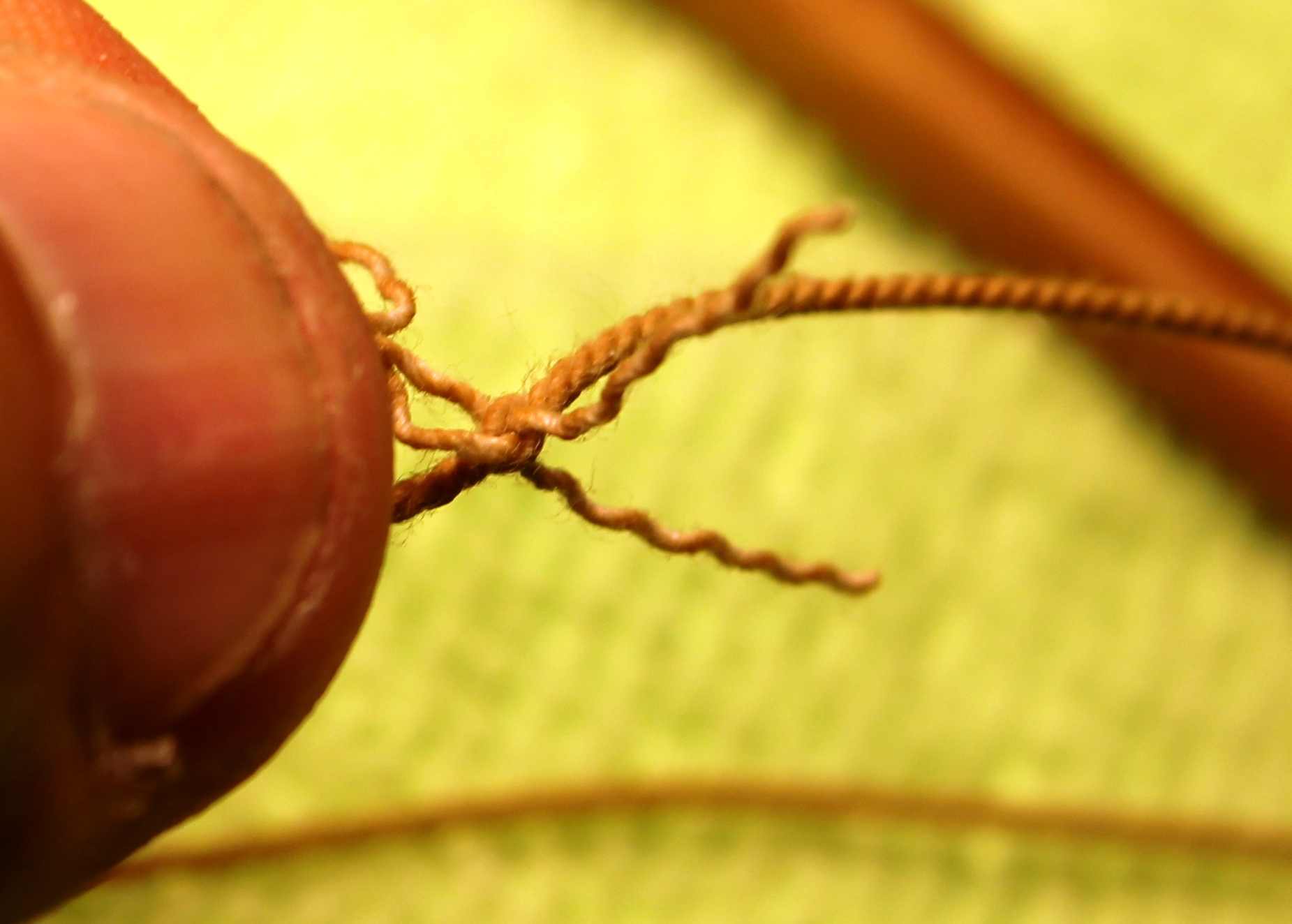 Отмеряем размер огончика и до этого места распускаем оставшийся хвост. По умным книгам надо в этом месте предварительно делать марку, но я не делаю