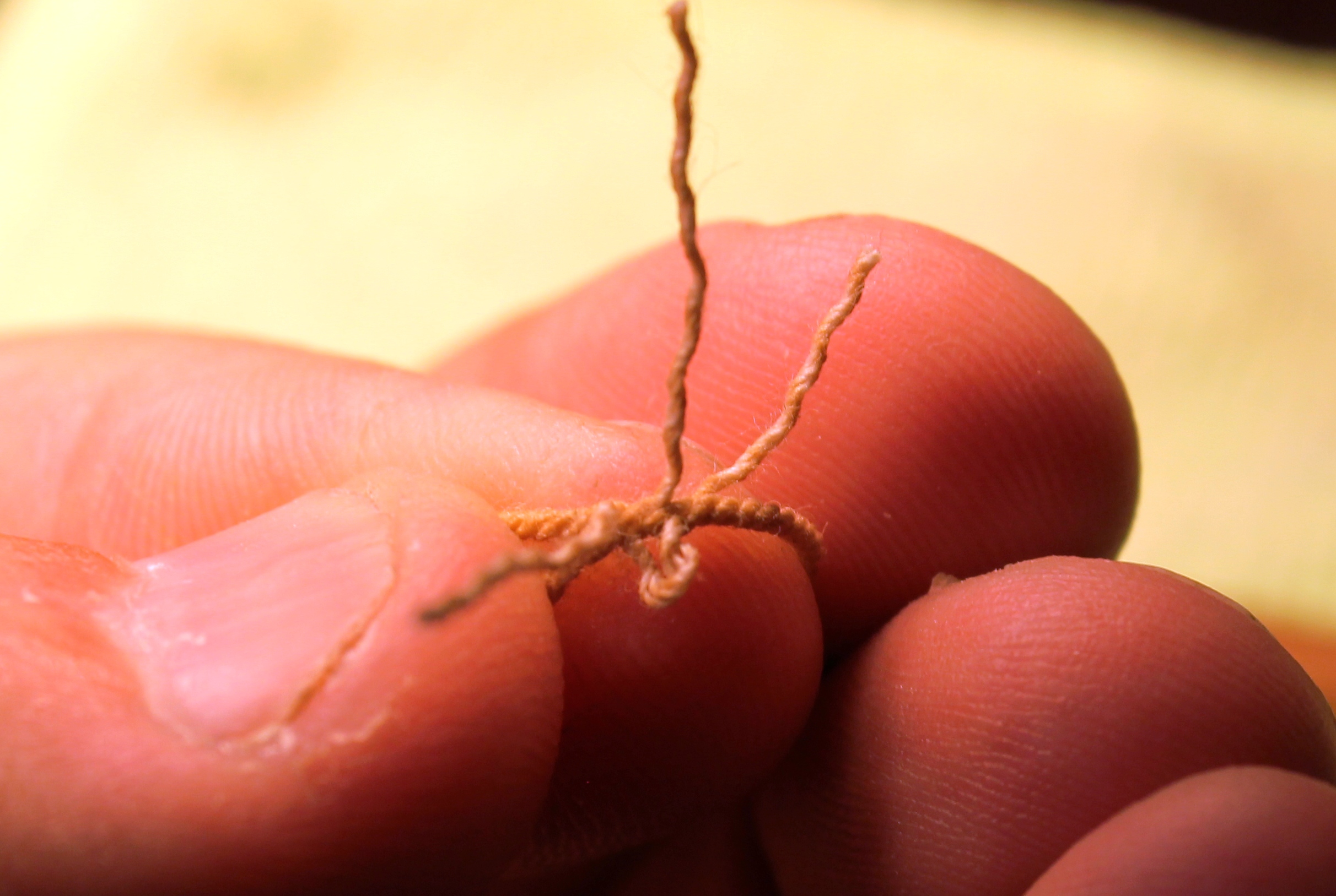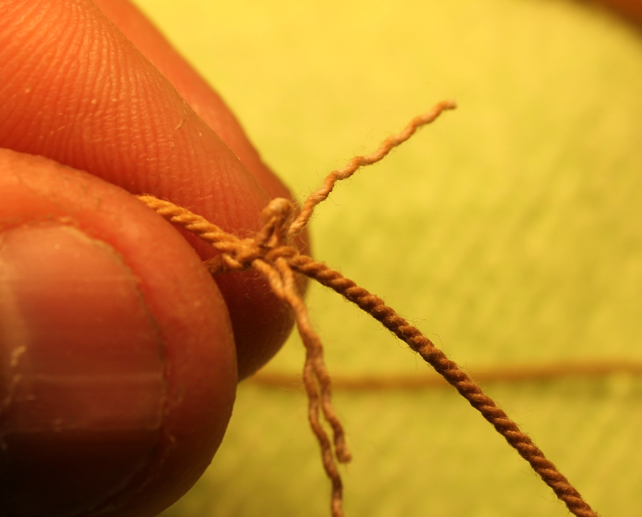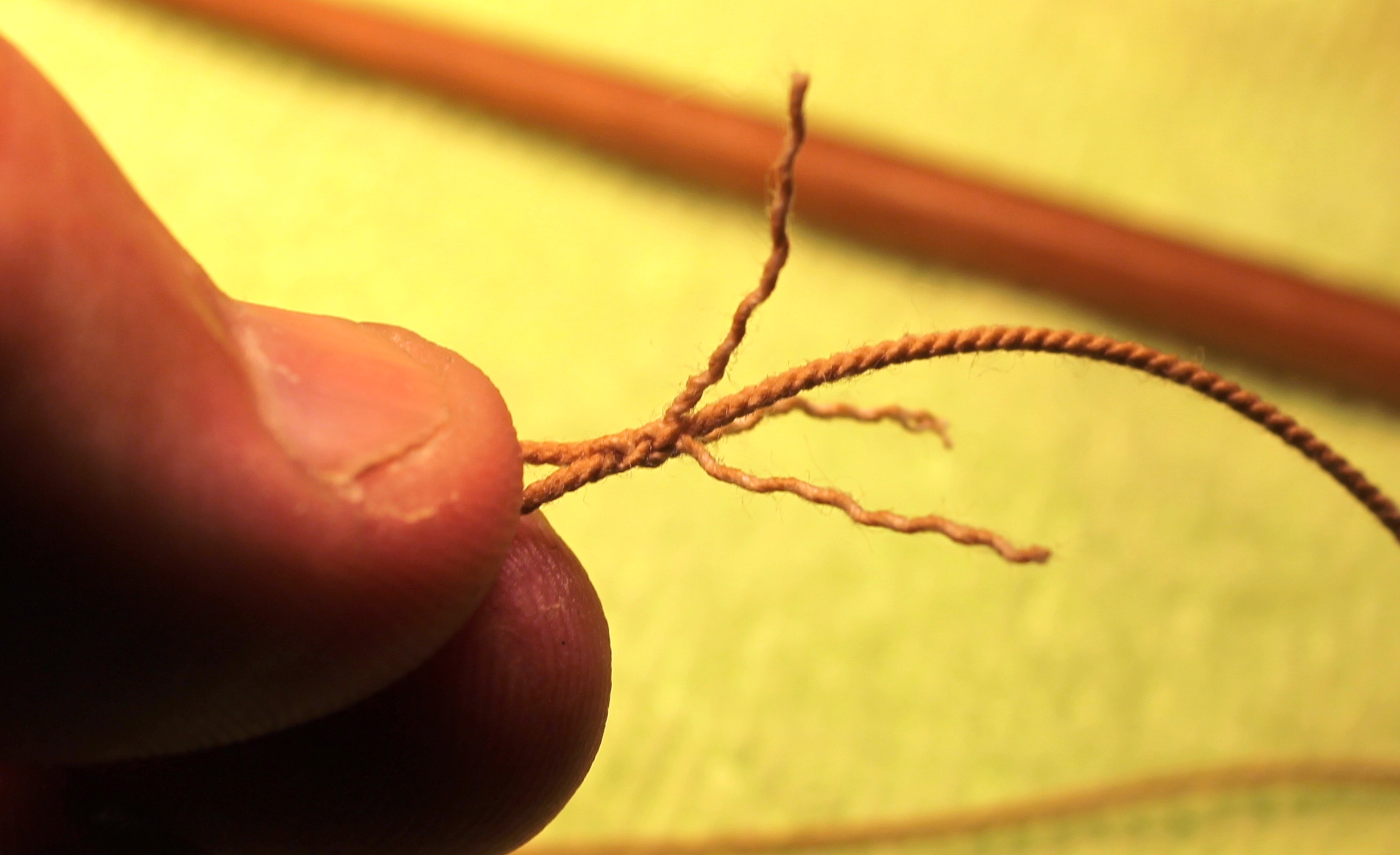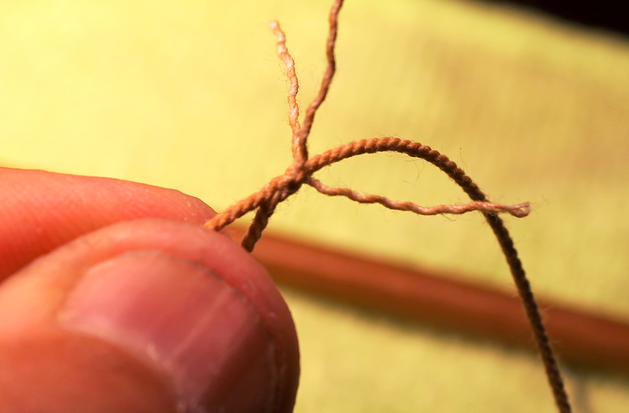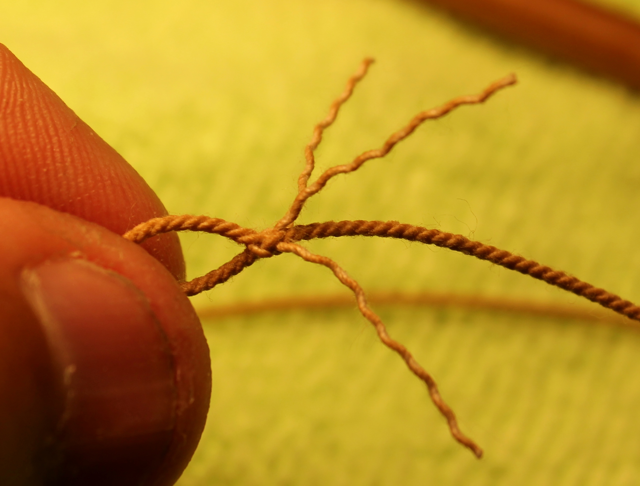 Теперь получается что из под этой пряди каната выходит две пряди из "хвоста"...