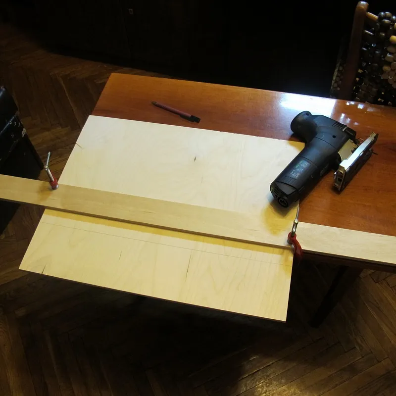 Т.к. жена давно просила сделать тумбочки в комнате чуть пониже и другого цвета, пользуясь случаем, заказал соответствующий раскрой ЛДСП, включив туда и основания для половинок корпуса и самой будущей модели:
