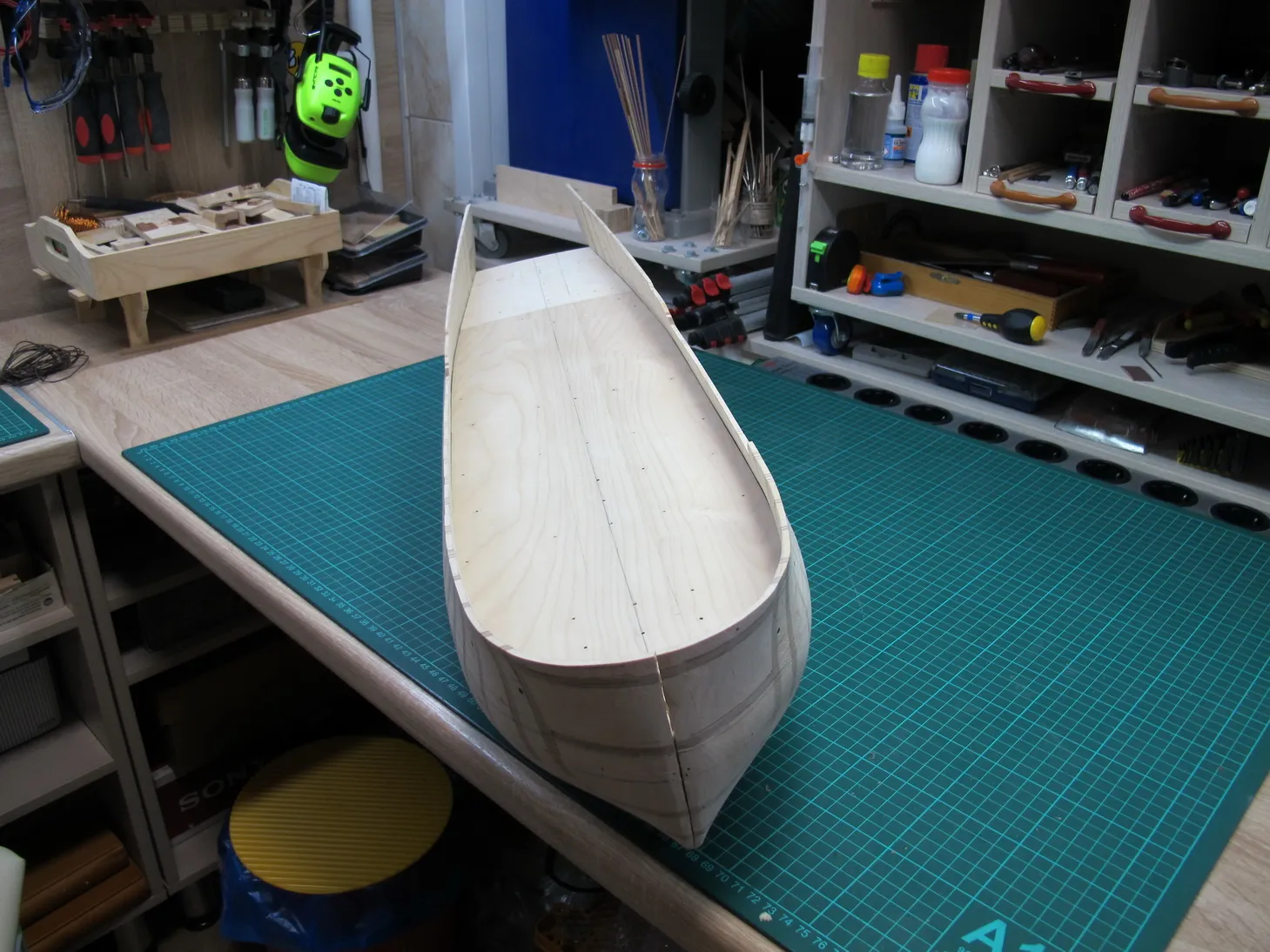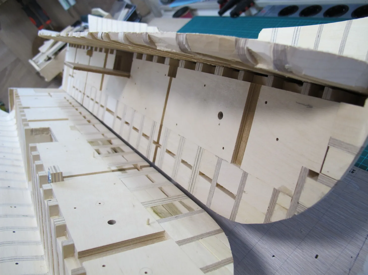 Внутреннюю обшивку буду делать уже после окончательного склеивания болвана корпуса.
