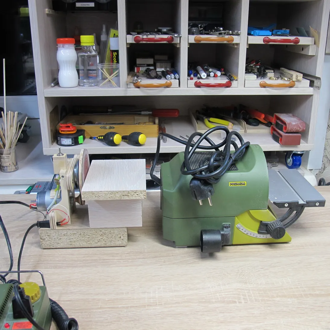 Шлифовалка сия несмотря на всю свою незатейливость и простоту изготовления оказалось в моем ассортименте инструментов бесспорным хитом. И положение это не сильно изменилось даже с появлением проксоновской
