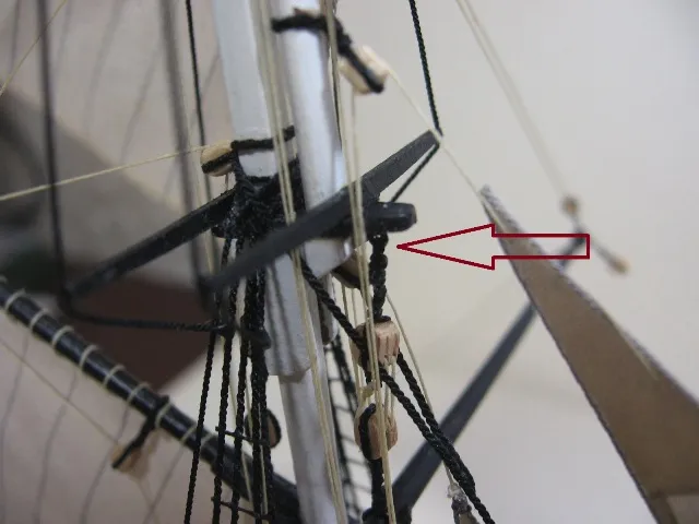 Тут все прикрепили простой скобой. Насколько это правомочно? и заодно блоки топенантов реи крепились к стеньге огонами или к эзельгофу? А если к зельгофу, то как?