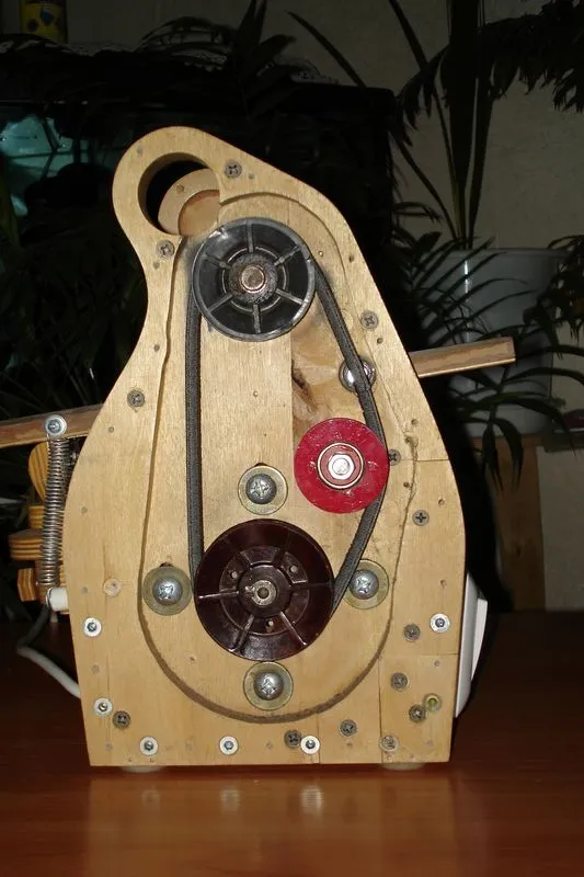 Вот здесь ошибся с длинной ремня, пришлось из пластика и подшипника делать ролик для натяжения ремня.