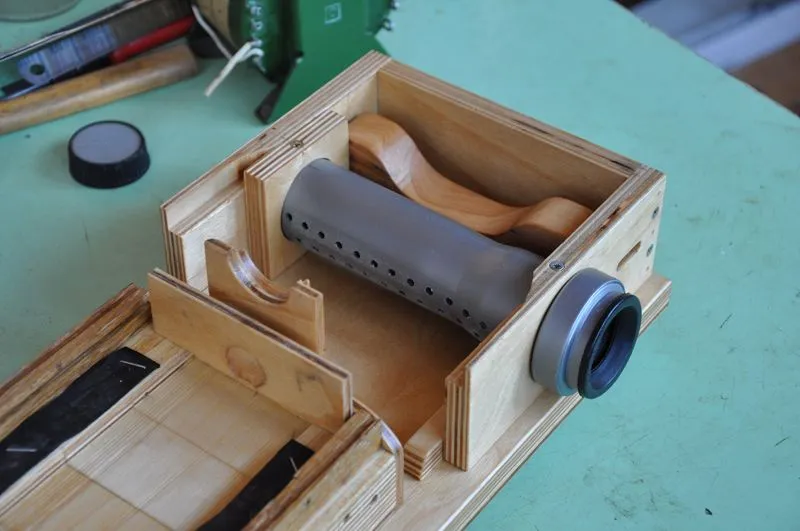 В процессе испытаний выяснил что недостаточная мощность всасывания, слишком большое отверстие от диска до кожуха, пришлось соорудить вот такую конструкцию.