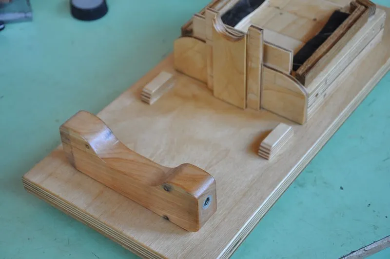 С шлифрейсмусом все гораздо проще. Продумывать конструкцию не пришлось, взял готовую от Игоря Набоко (). Так как там описано подробнейшее изготовление, то процесс не снимал, только готовый результат. Только в двух узлах сделал изменение - это узел подъема стола и в узле поворота стола поставил подшипники, а не просто штырек в фанеру