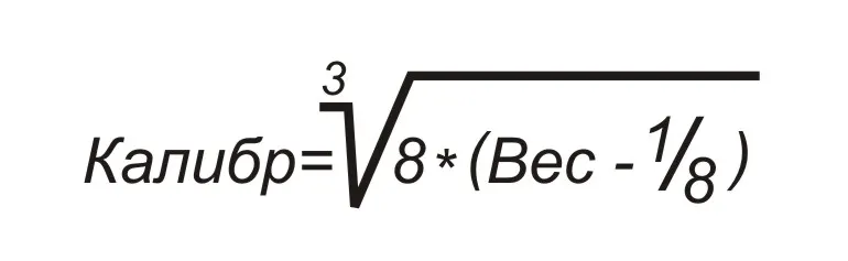 Чтобы определить вес ядра по его диаметру: возведите в куб диаметр и разделите на 8, а затем добавьте 1/8 к получившемуся результату и у вас получится вес ядра в фунтах.