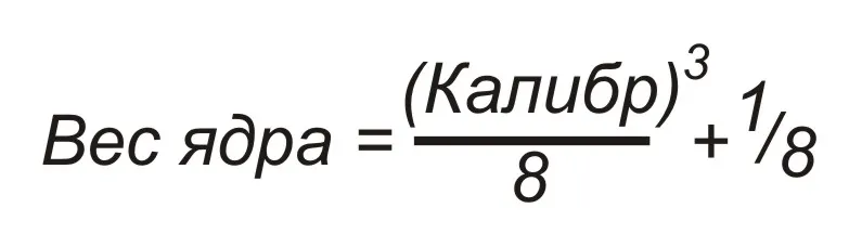Калибр или диаметр пушечного ядра можно определить по его весу: вычтите 1/8 из его веса и умножьте остаток на 8, а затем извлеките из получившегося кубический корень: