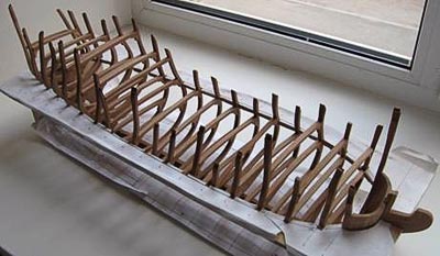 'Острые' шпангоуты состоят из двух ветвей, склеенных внизу. В середине вклеена вставка.