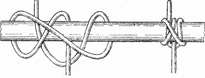 Питонов узел (рис. 52). Как питон почти ничем не отличается от удава, так и этот узел не имеет особых отличий от 'констриктора'. По принципу они схожи. Питонов узел применим для тех же случаев, что и 'констриктор'. Кроме этого, он очень может пригодиться для связывания двух поперечных реек (рис. 52, б). Их соединение с помощью этого узла будет намного прочнее, чем на гвоздях.