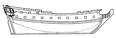 Схема бокового вида 32-пушечного фрегата «Россия» (заложен 20 декабря 1724 г., строитель Р. Броун)