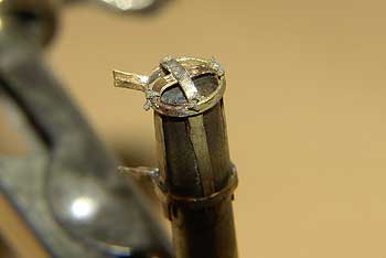Из тонких полосок латуни паяем крестик. Здесь и далее для пайки латуни я использовал в качестве припоя специальную серебрянную пасту, а паял газовой горелкой.