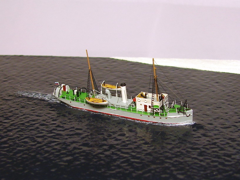 На диораме попытался показать кусок льдины, а на бортах корпуса модели небольшое облединение. Первый опыт не совсем удачен, но на фото и вживую - это не очень критично.