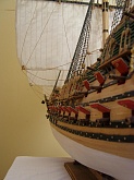 Модель выполнена из набора MAMOLI. Масштаб 1:75. Размеры 775 х 714 мм. При постройке использованы материалы только из набора. Из добавлений только самодельные паруса (в наборе их нет) и шлюпки (т.к. на литые из набора смотреть без слез просто невозможно).