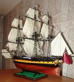 Представляю Вашему вниманию модель HMS "Pandora". Работа над моделью велась около 5 месяцев. За основу взят №21 Шипярда HMS "Cleopatra", а также книга "Anatomy of the ship - The 24-gun Frigate Pandora 1778". Применялись также заготовки парусов для HMS "Mercury" от Шипярда, а также блоки и юферсы от этого же издательства. Пушки литые в гипсовую форму (лил первый раз, окрашены краской "оружейная сталь"), краски акрил "Хома", клей Момент столяр и супер момент гель, момент кристал. Подставка дерево, таблички - гравированая латунь.