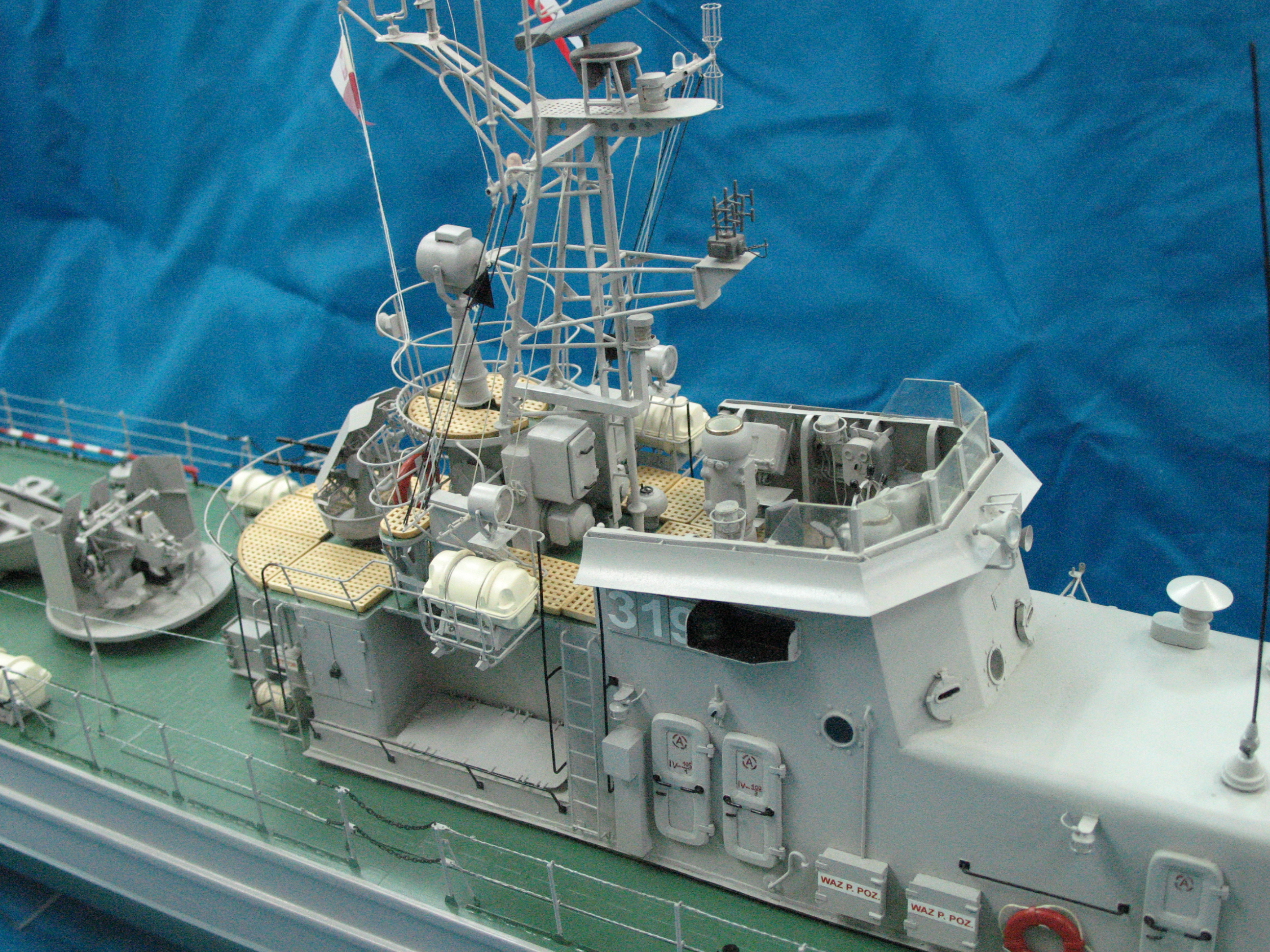 Модель строилась для участия в сореснованиях в классе Ф2Б. Масштаб 1:40. Чертежи из журнала Модельбау-хойте (http://forums.airbase.ru/2009/06/t67481--chertezhi-patrulnogo-katera-tipa-gdansk-polnisces-patrouille.html). корпус стеклопластик. Палуба стеклотекстолит. Рубка, главные орудия из жести. Применялся пластик пвх, целлулойд, акрил, дерево, пленка оракал ( на палубе). Швы делал из нитрокраски - резал тонкие полоски чуть подсохшей краси и приклеивал их на корпус, где на спирт, где на ацетон. Затем свехрху финишная покраска тоже нитро. Силовая установка - два двигателя Спид 400. Для флагов применялась термотрансферная бумага с последующим переносом изображения на ткань.