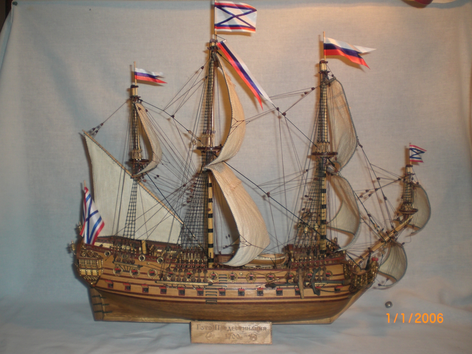 Масштаб 1:96.При постройке использовались польские чертежи,М-К и как наглядный пример-пластиковый набор "Огонек",из него же взята большая часть декора.Корона льва,дельфины и завитки на офицерском гальюне изготовлены самостоятельно.Покрашены золотой нитрокраской "Hobby". Борта снаружи-верх:шпон буковый,низ:дубовый.Палуба-рамин,борта внутри-шпон из журналов "Cан Джованни Батиста".Остальное-липа,ольха,красное дерево.Пушки точены из дерева и покрыты лаком с графитом.Такелаж навит из полиэфирных ниток.Бегущий такелаж бежевого цвета,покрашен спиртовой морилкой "красное дерево"Паруса льняные-нравится материал.Полотно напоминает парусину.Мачты и реи из рамина.На дату внимания не обращайте-Фотик завис на дате выпуска.Закончено в сентябре 2012.